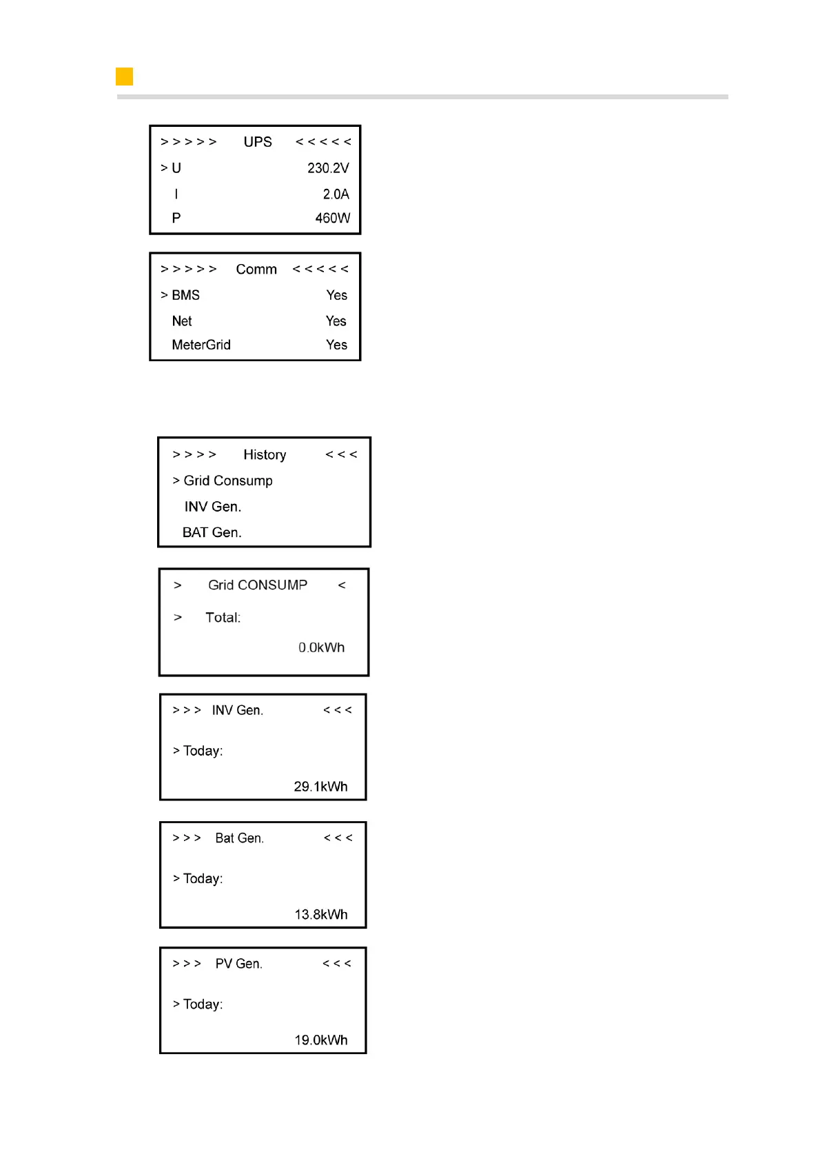 menus: Grid Consumption, INV Gen.,
