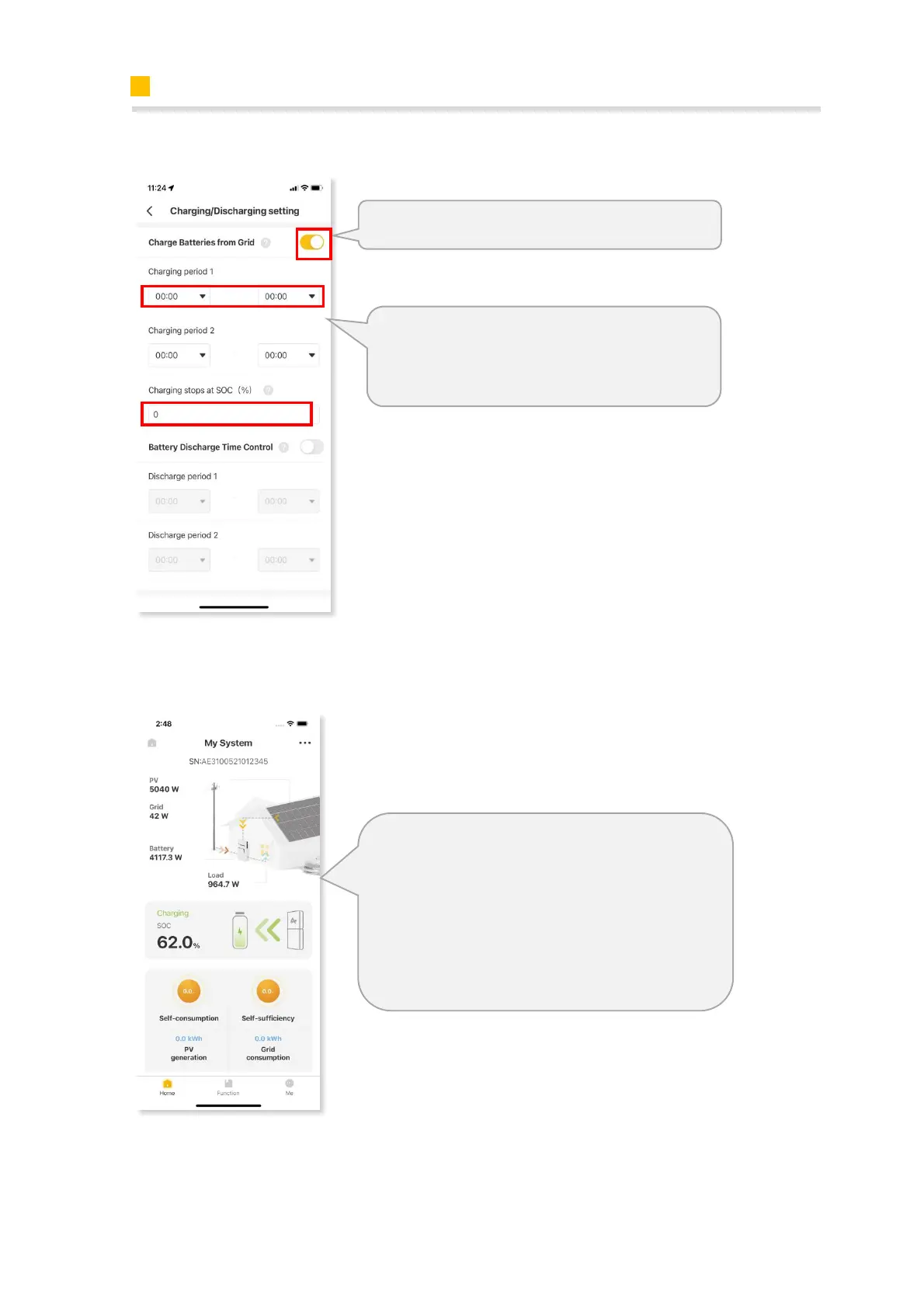 please set the “Charging period 1” for the time and the SOC