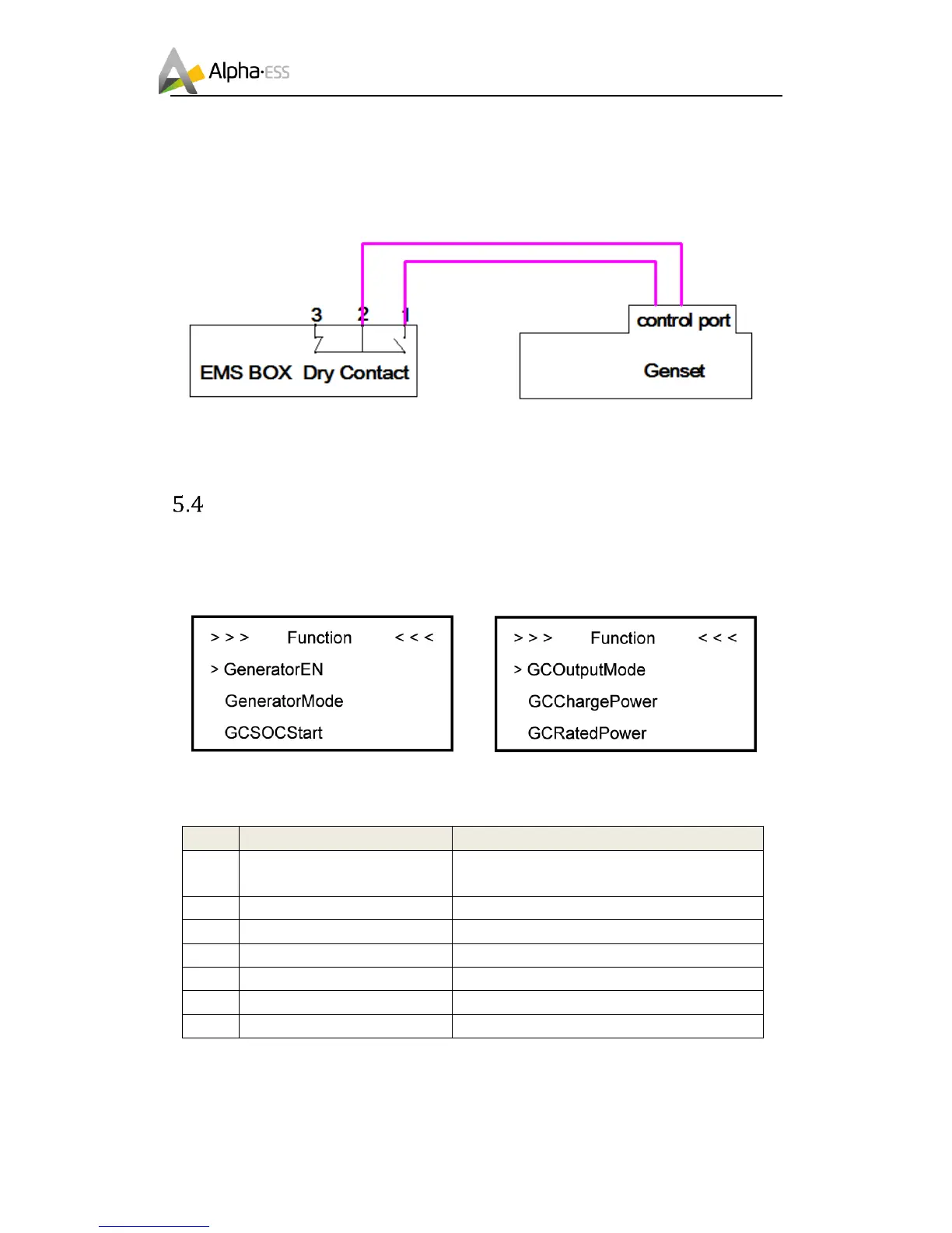 Note: normally open/closed contact which connects the Genset according to the genset