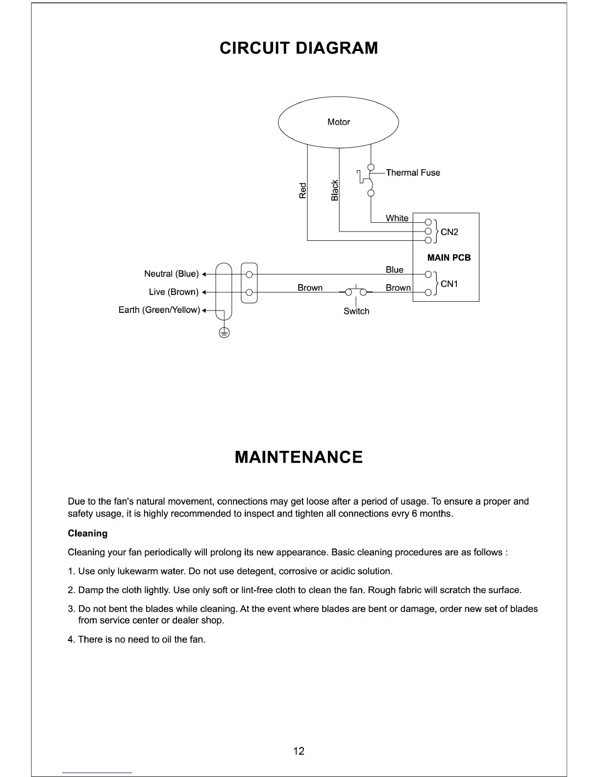 Alpha Fan BT5 - Circuit Diagram; Maintenance; Cleaning