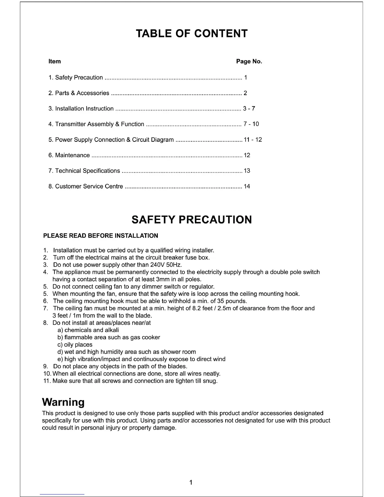 Alpha Fan BT5 - Table of Content