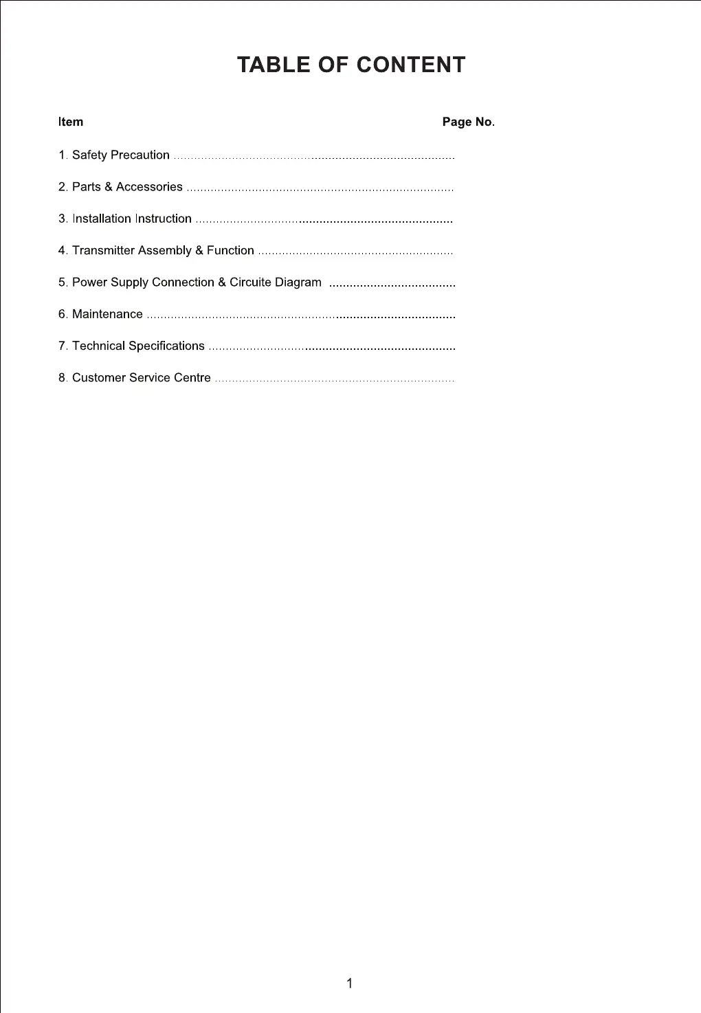 Confirm that the power supply has been switched OFF before installing or servicing the unit. Ensure