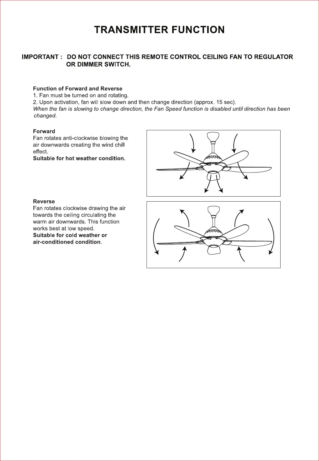 memory and when the fan is switch on again, the operation will be as the last memory/setting.