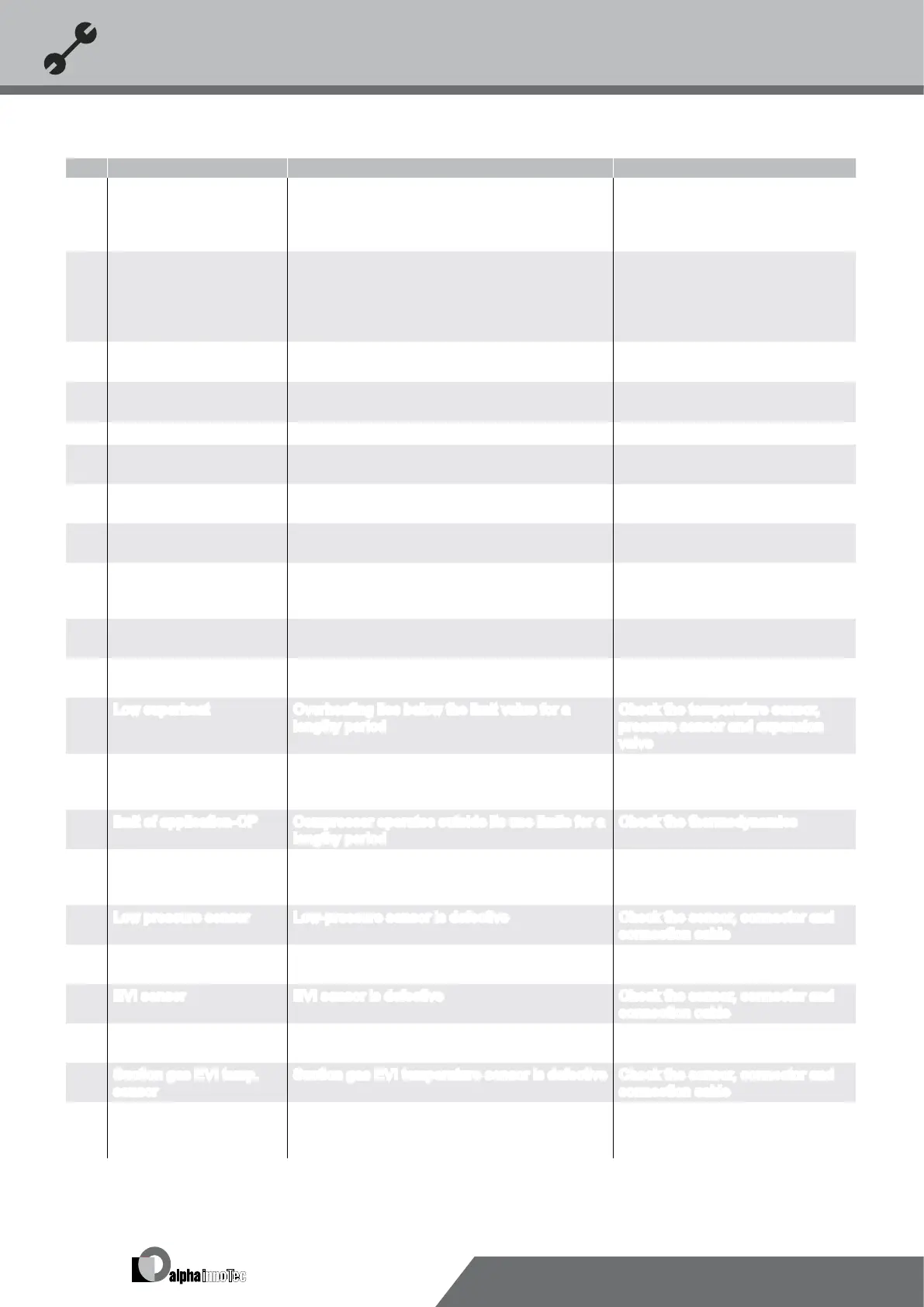 Suction gas EVI temperature sensor is defective Check the sensor, connector and