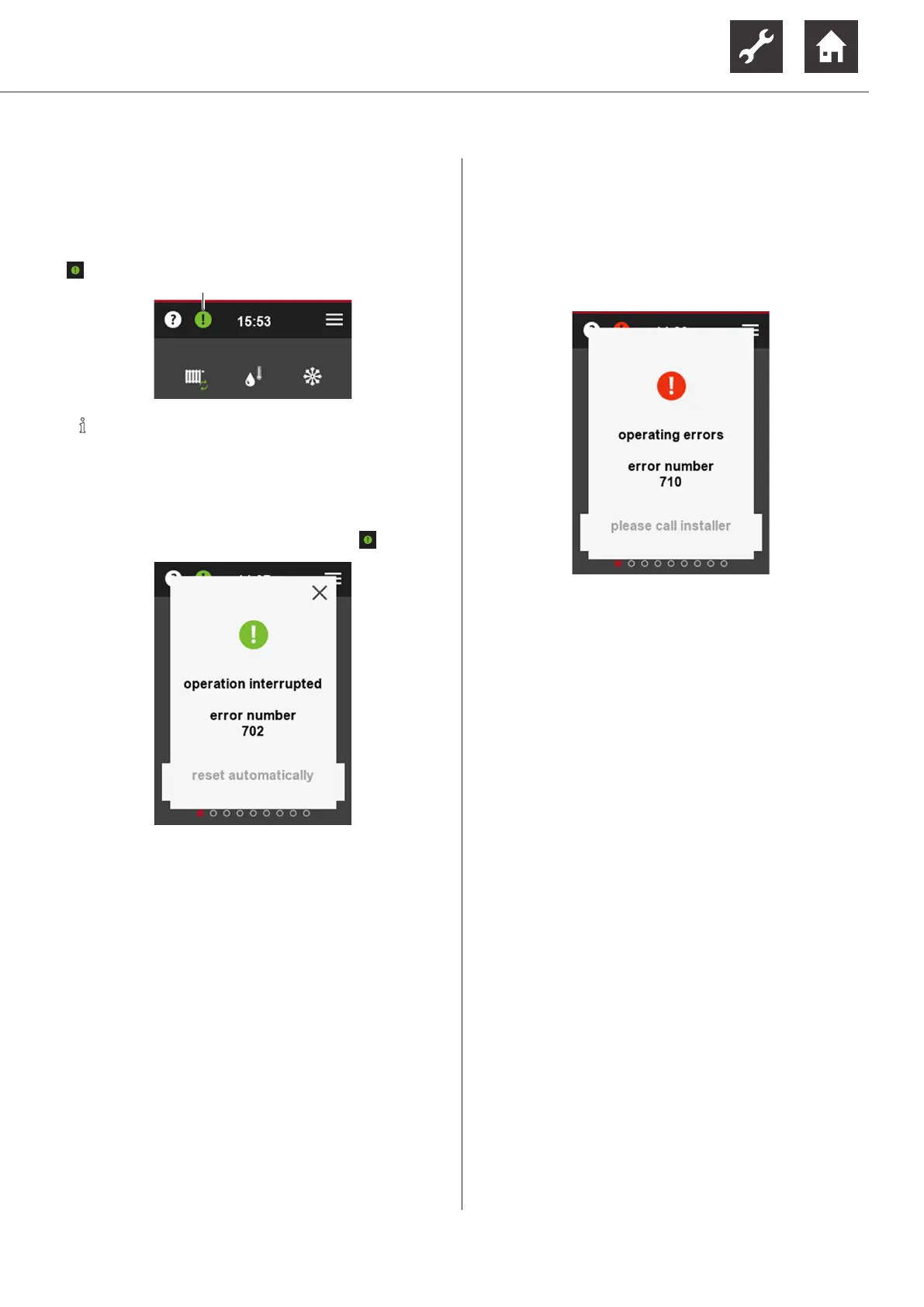 1. Call up the error message by touching .