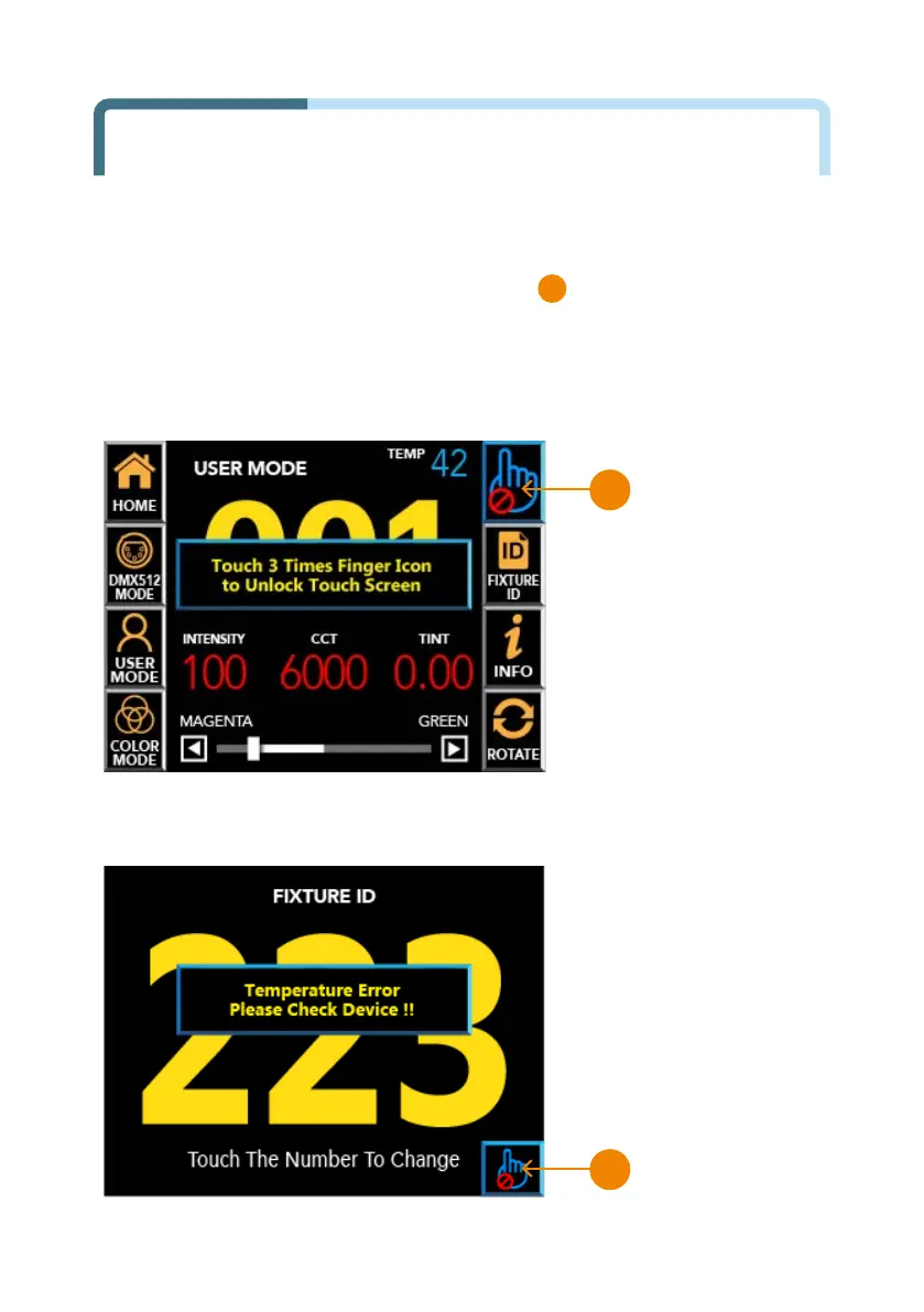 When the fixture is turned on, the Smart Touch screen automatically locked.