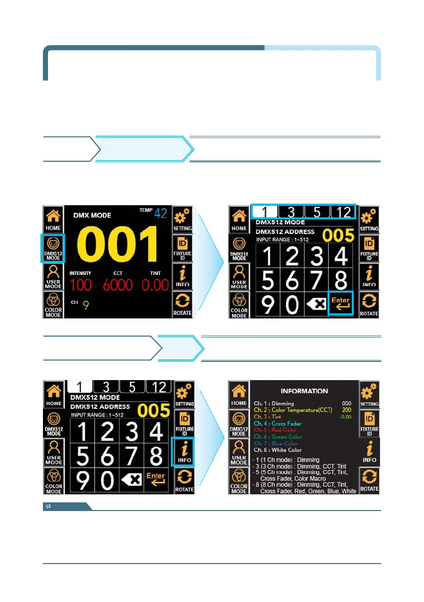 ▶ Input DMX512 address by pressing the number pad.