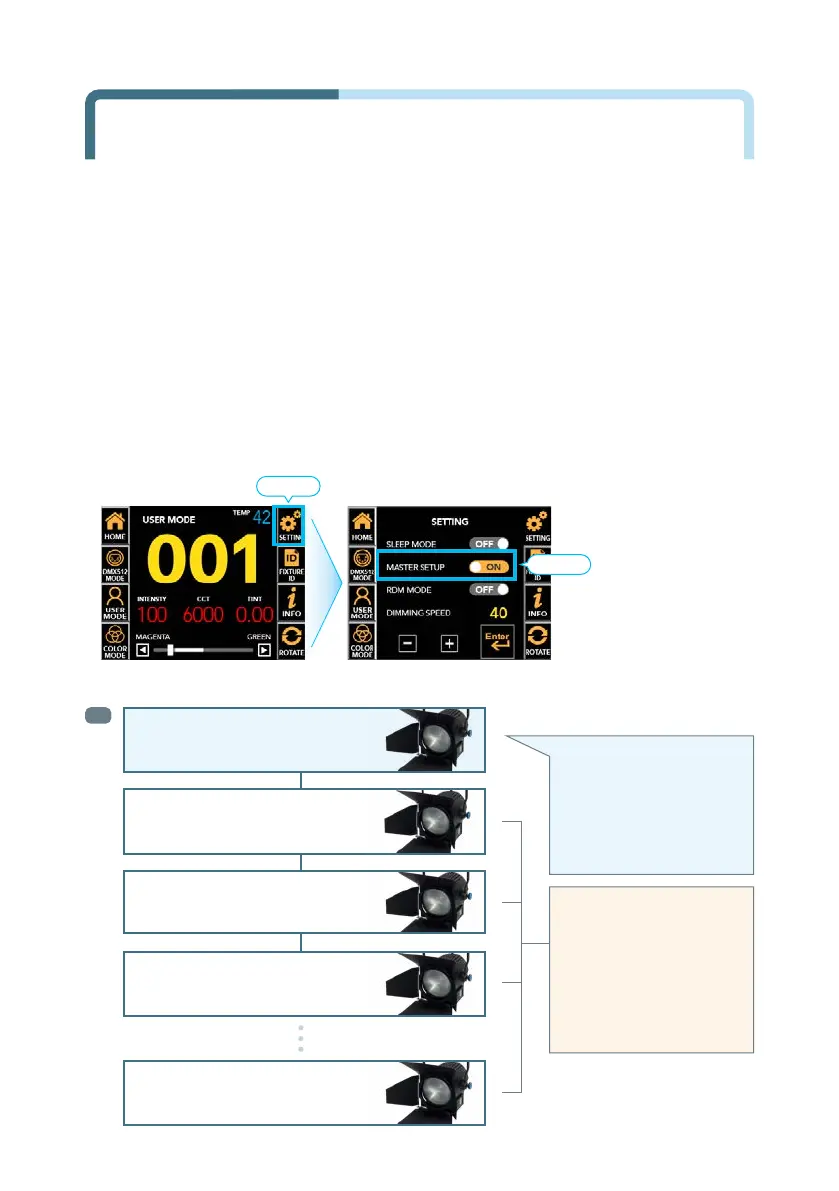 • Main screen ▶ Setting ▶ Touch MASTER SETUP, the function turns on. (2 Touch)