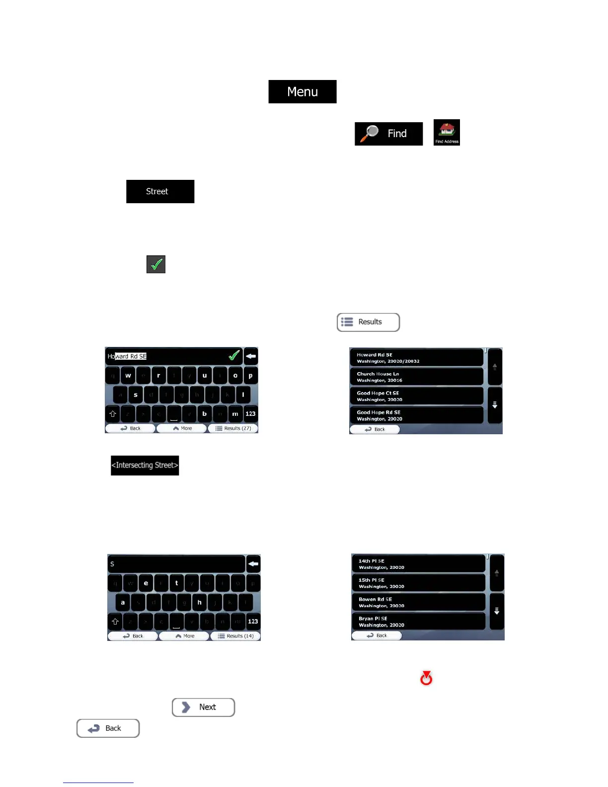 b. Start entering the street name on the keyboard.