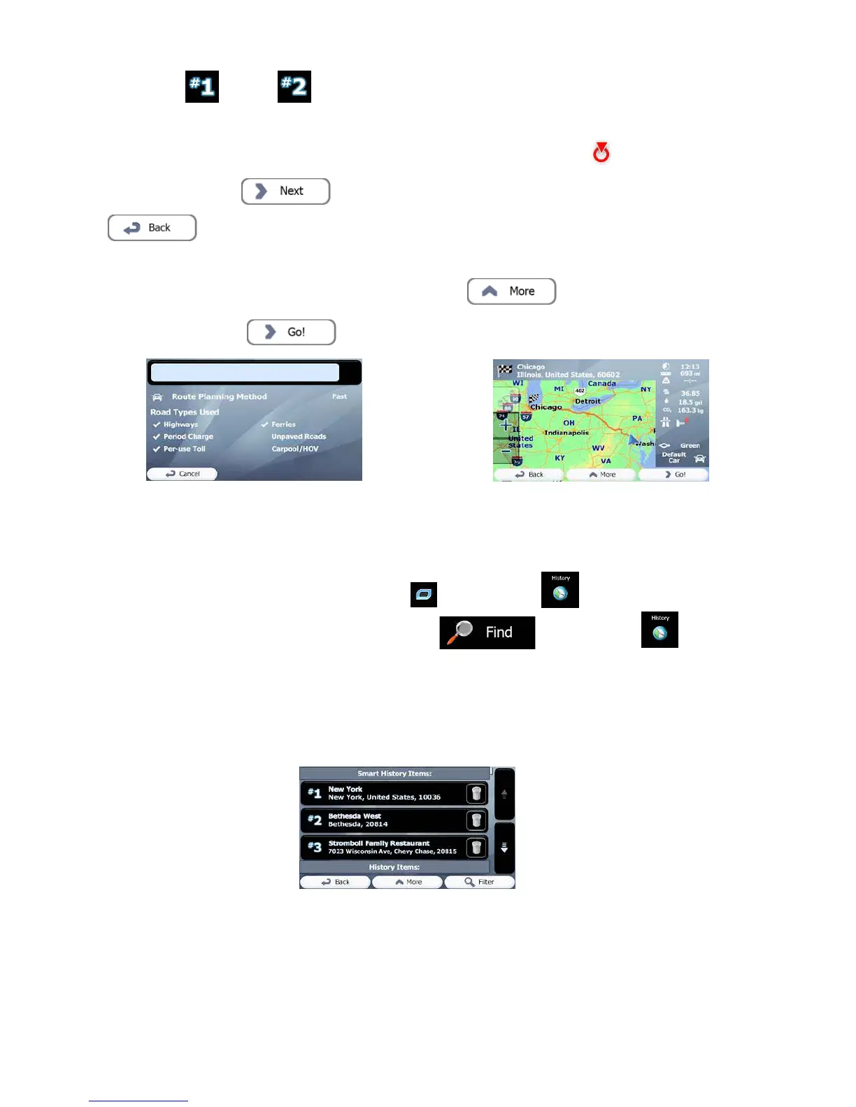 2. The list of recent destinations appears. Smart History promotes three destinations