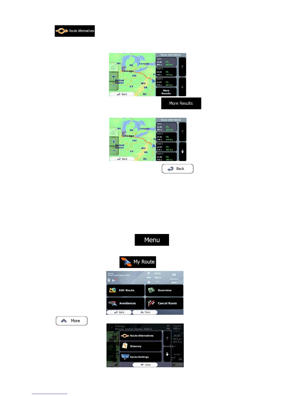 previous screen. ALPHA-NAV navigation recalculates the route. The orange line now
