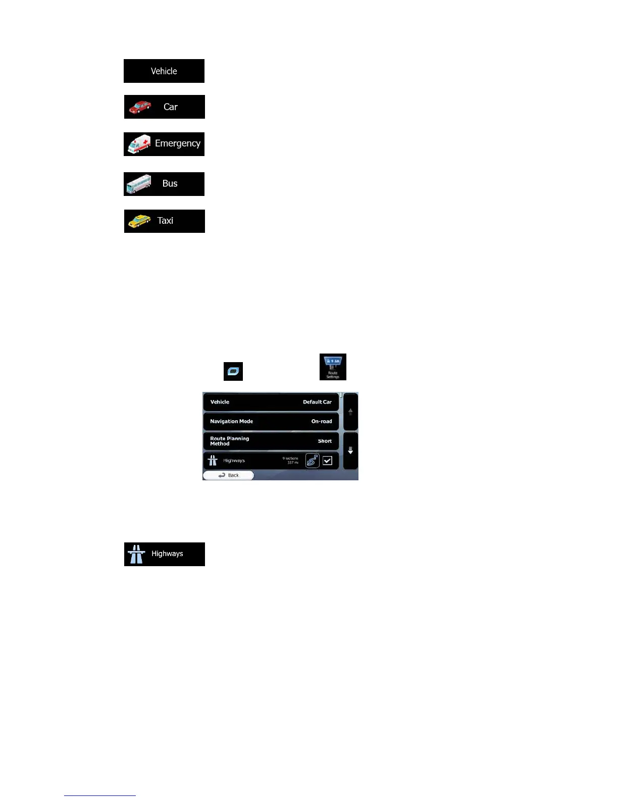 To recalculate the active route with different road type preferences, do as follows.