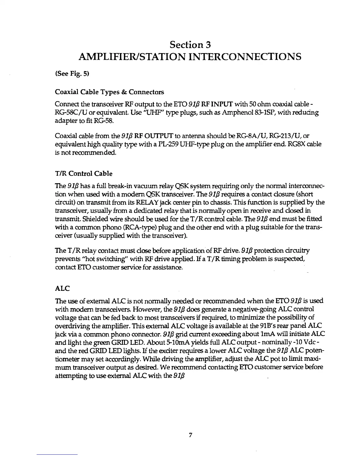 transmit. Shielded wire should be used for the T/R control cable. The 91(3 end must be fitted