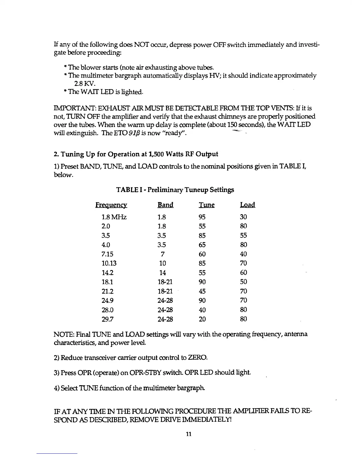 2. Tuning Up for Operation at 1,500 Watts RF Output