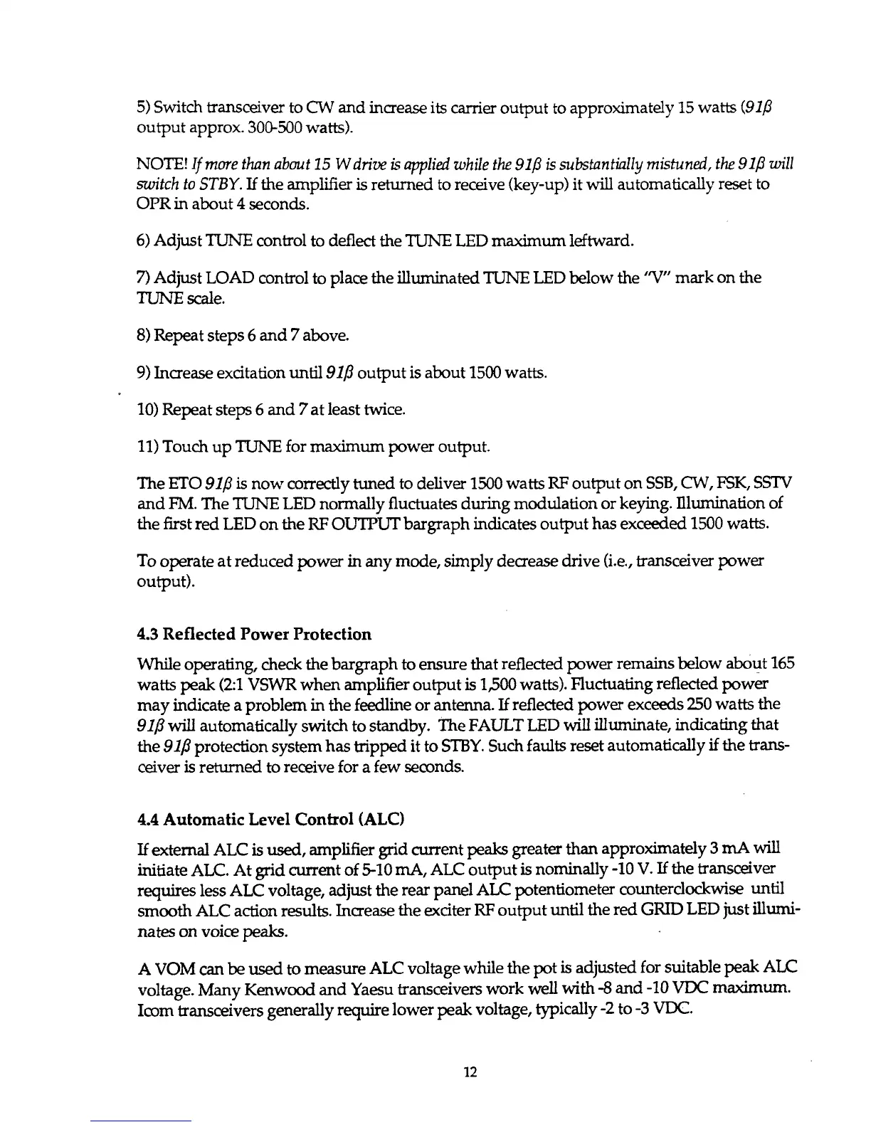 initiate ALC. At grid current of 5-10 mA, ALC output is nominally -10 V. If the transceiver