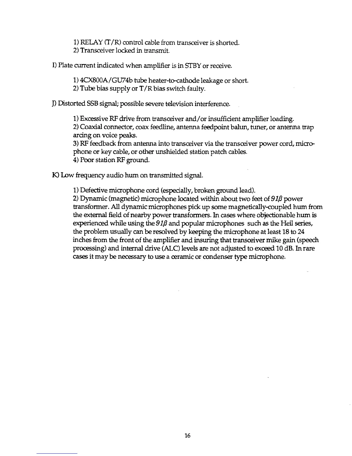 1) Excessive RF drive from transceiver and/or insufficient amplifier loading.