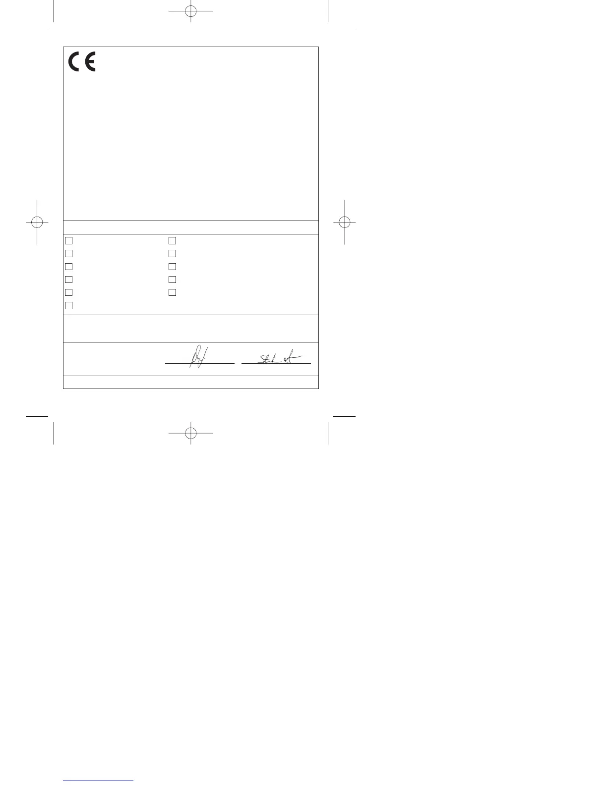 EN 61000-3-2; EN 61000-3-3; EN 60335-2-29; EN 60335-1; EN 50366