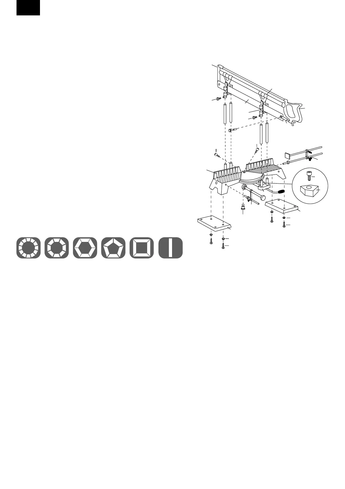 pointe vers le haut. Enfoncez maintenant doucement l'axe d'angle (8) avec un maillet dans la table de scie (12) et xez l'axe d'angle (8) avec la