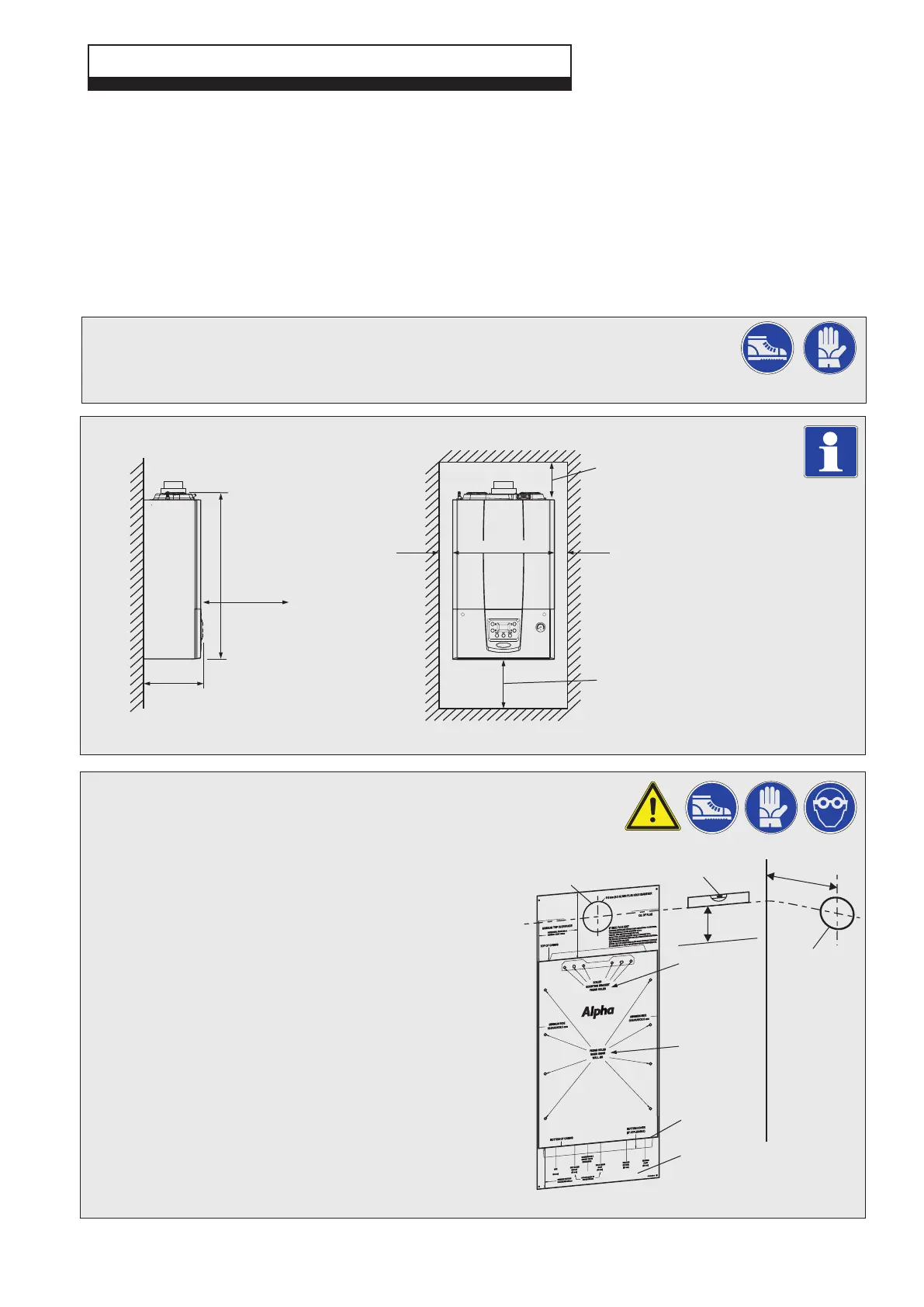 1. Decide upon the position of the boiler taking into account the clearances required