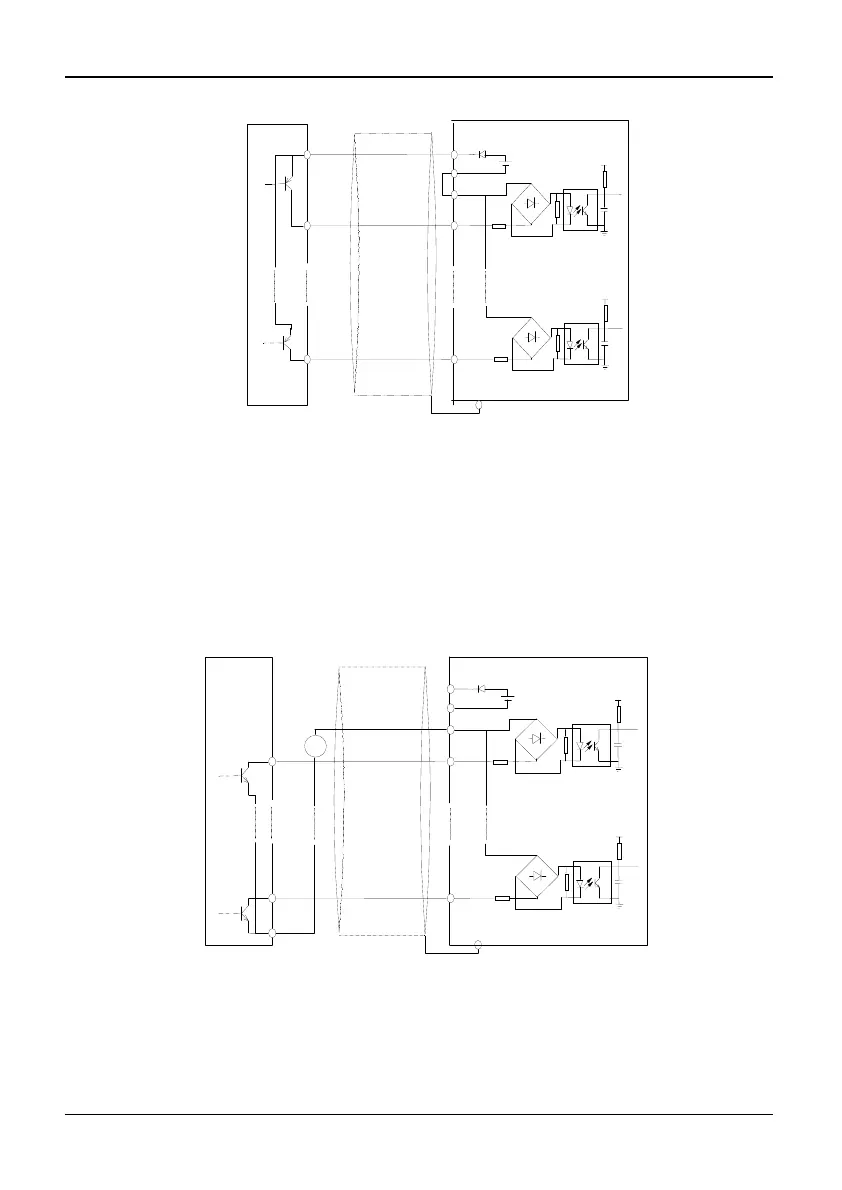 Fig. 2-23 Drain connection method by using inverter's internal +24 V power supply (in