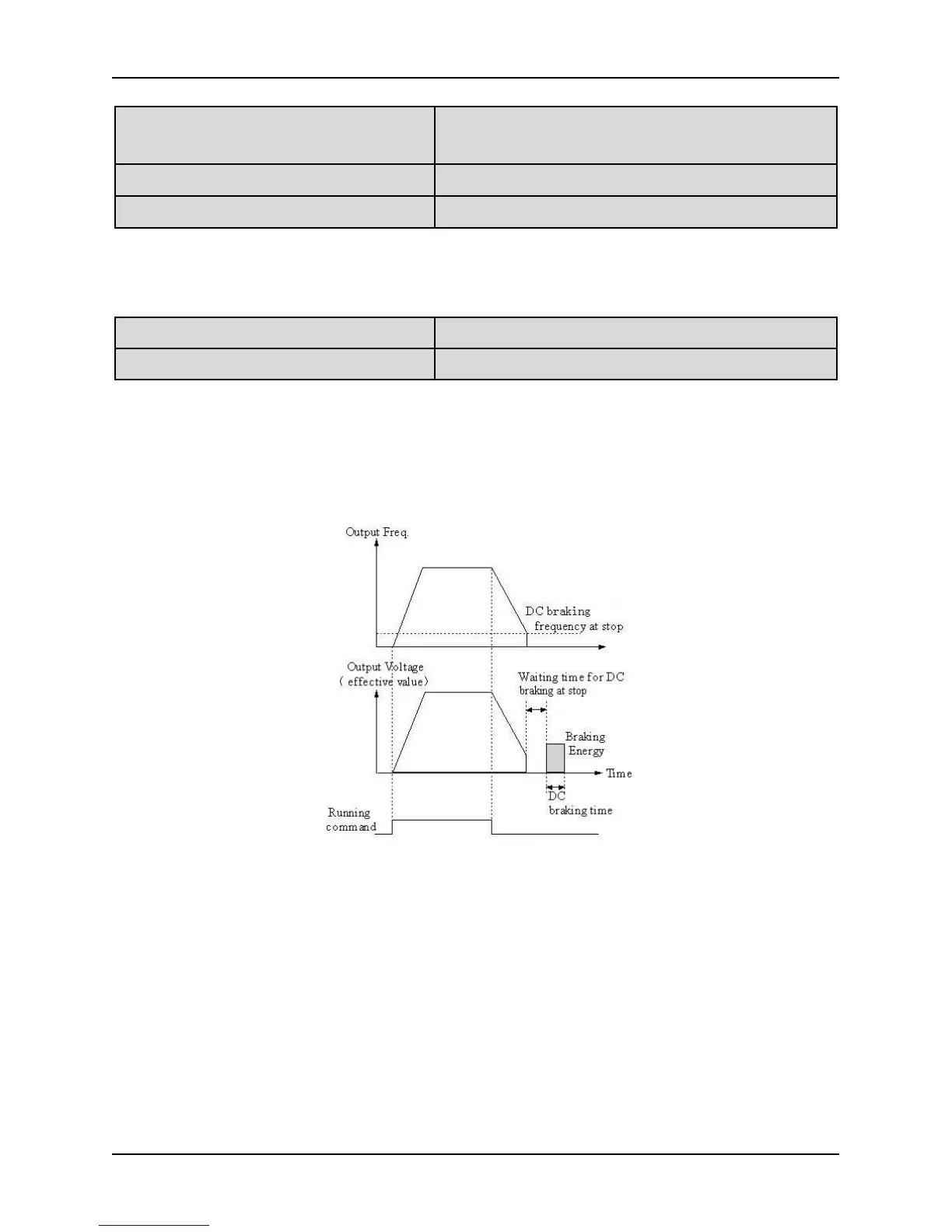 “DC braking frequency at stop, the DC braking function will startup.