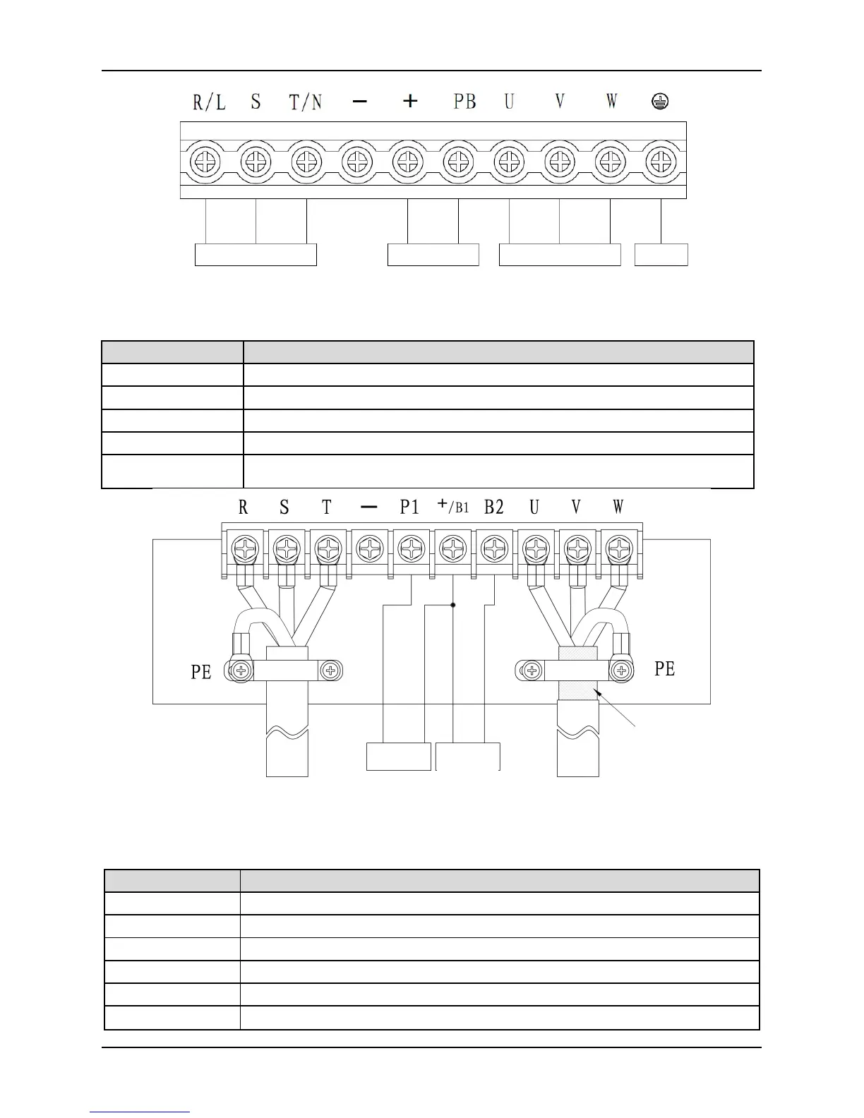 PE Protective earth terminals for input power or shield earth terminals for motor cable and