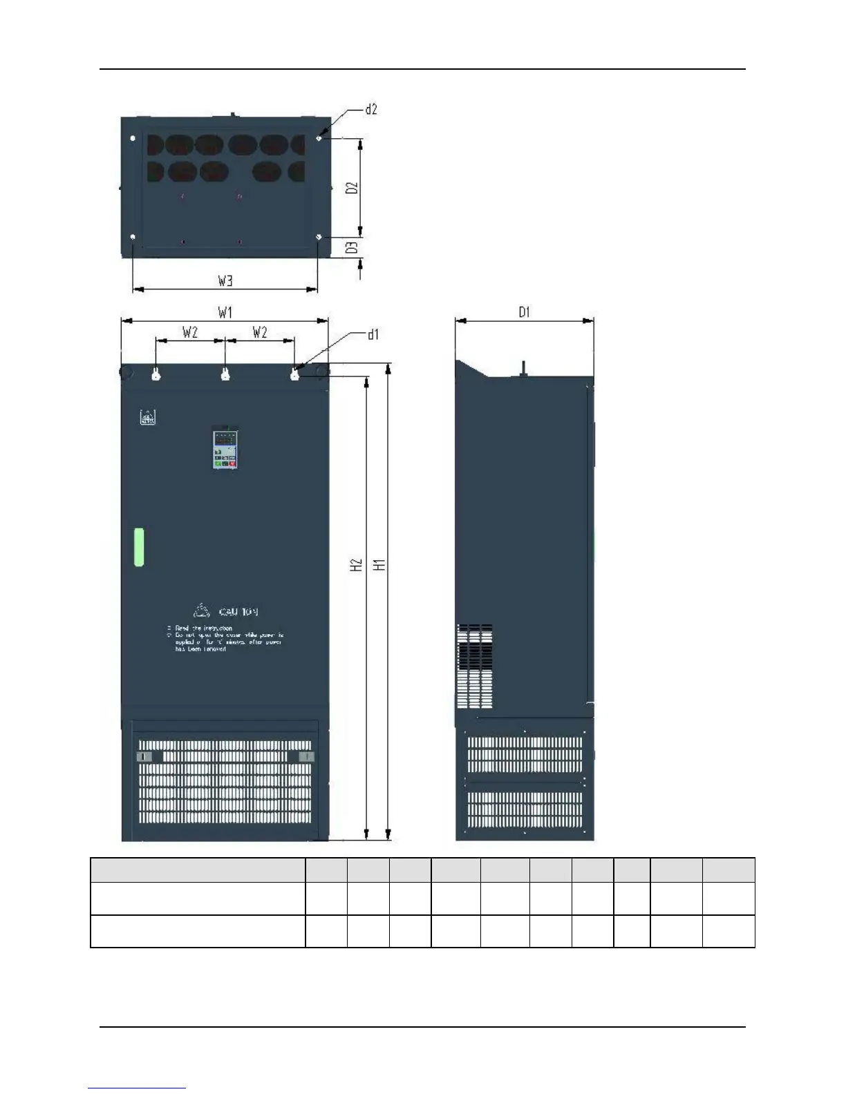 Specifications W1 W2 W3 H1 H2 D1 D2 D3 d1 d2