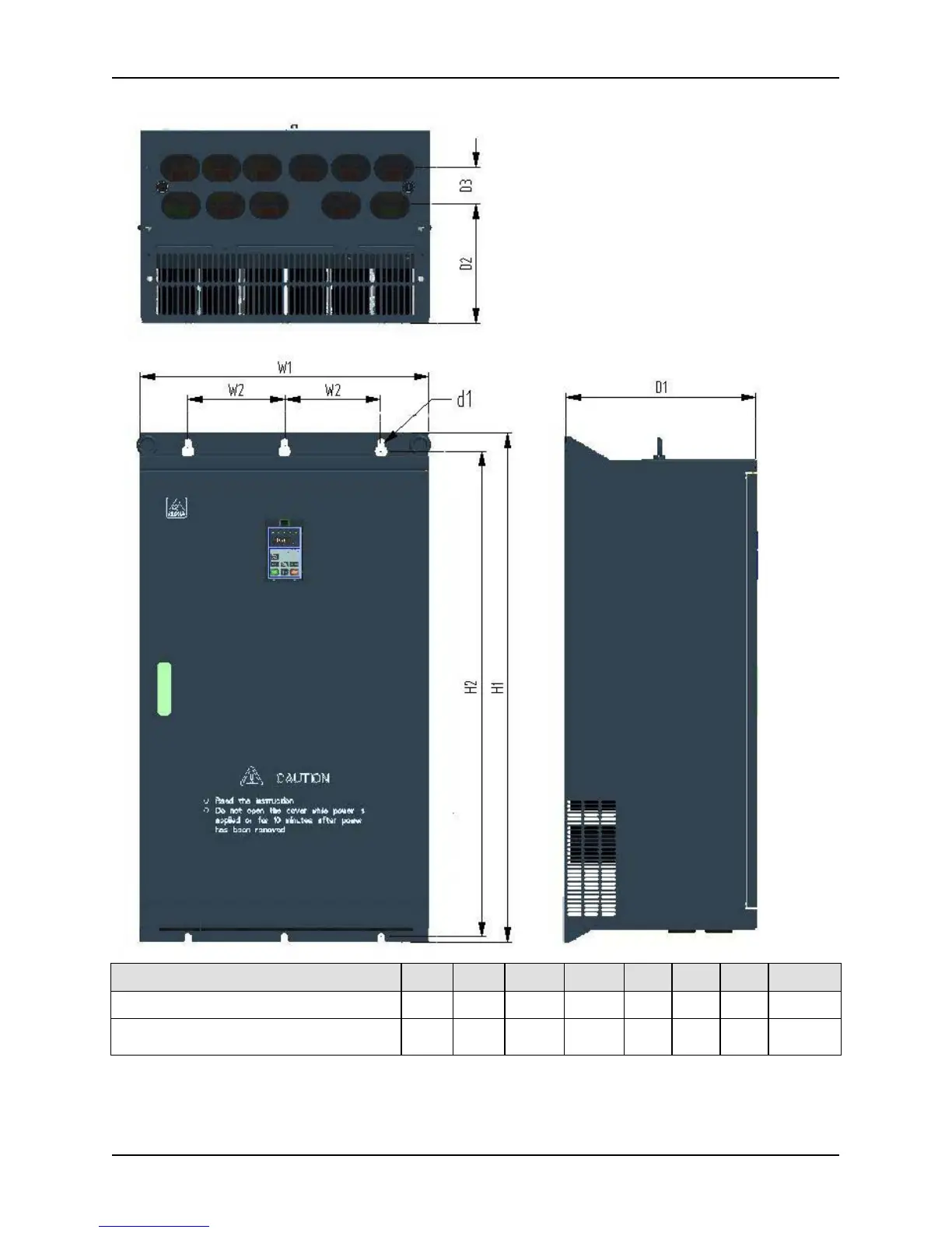Alpha 6000S series - Appendix 1 External Dimension and Installation Dimension (Unit: mm); 380 V 400-500 KW Standard Inverter Dimensions