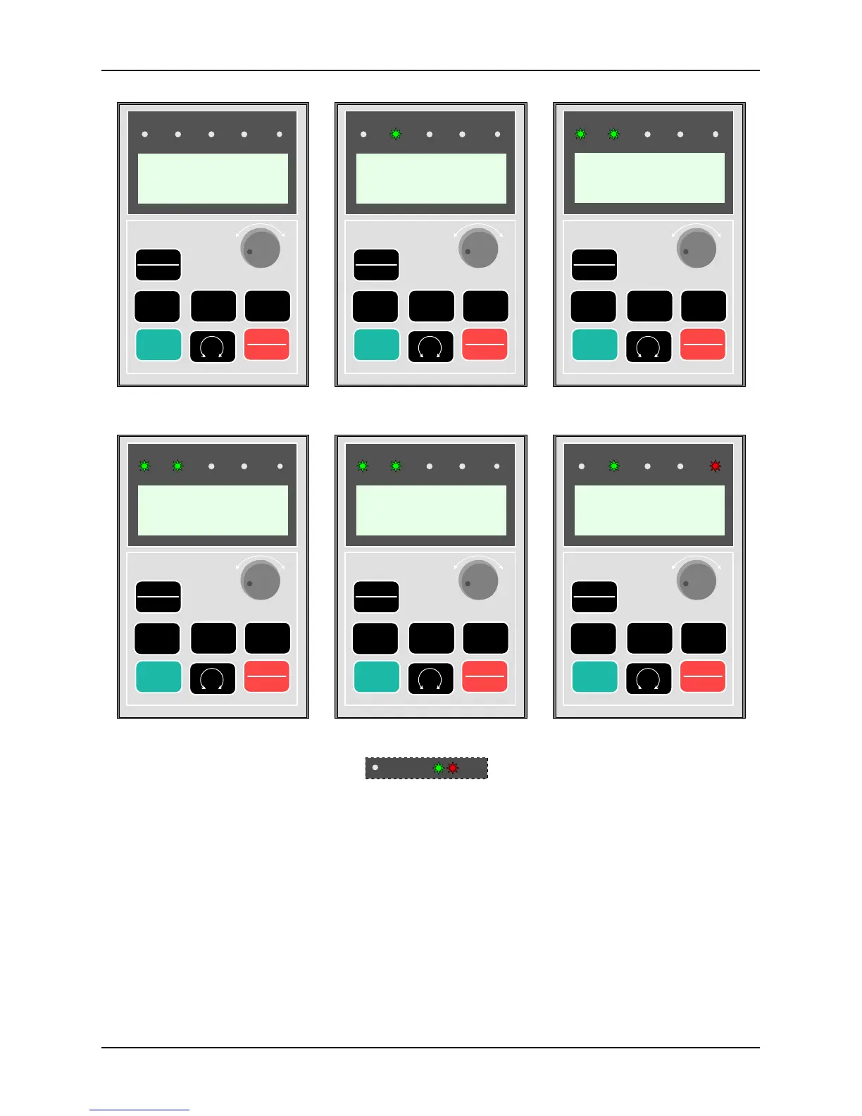 Figure A6-2 LCD Keypad: Display of Frequency Inverter Initiation, Stop, Operation, Alarm and Fault State