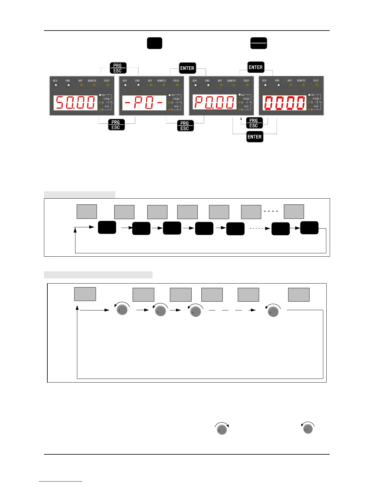 Fig. 3-5 Examples of running parameters display operations of (stopping switching method is the same as above)