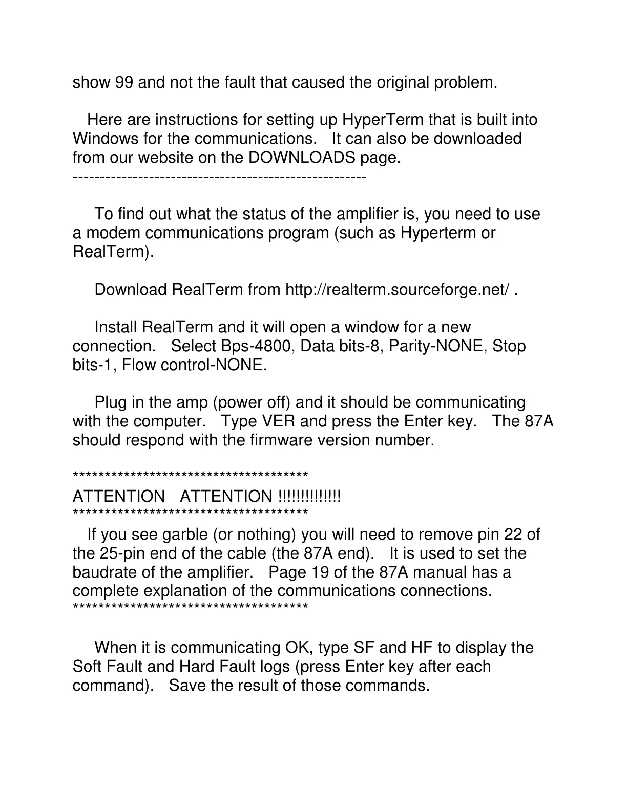 baudrate of the amplifier. Page 19 of the 87A manual has a