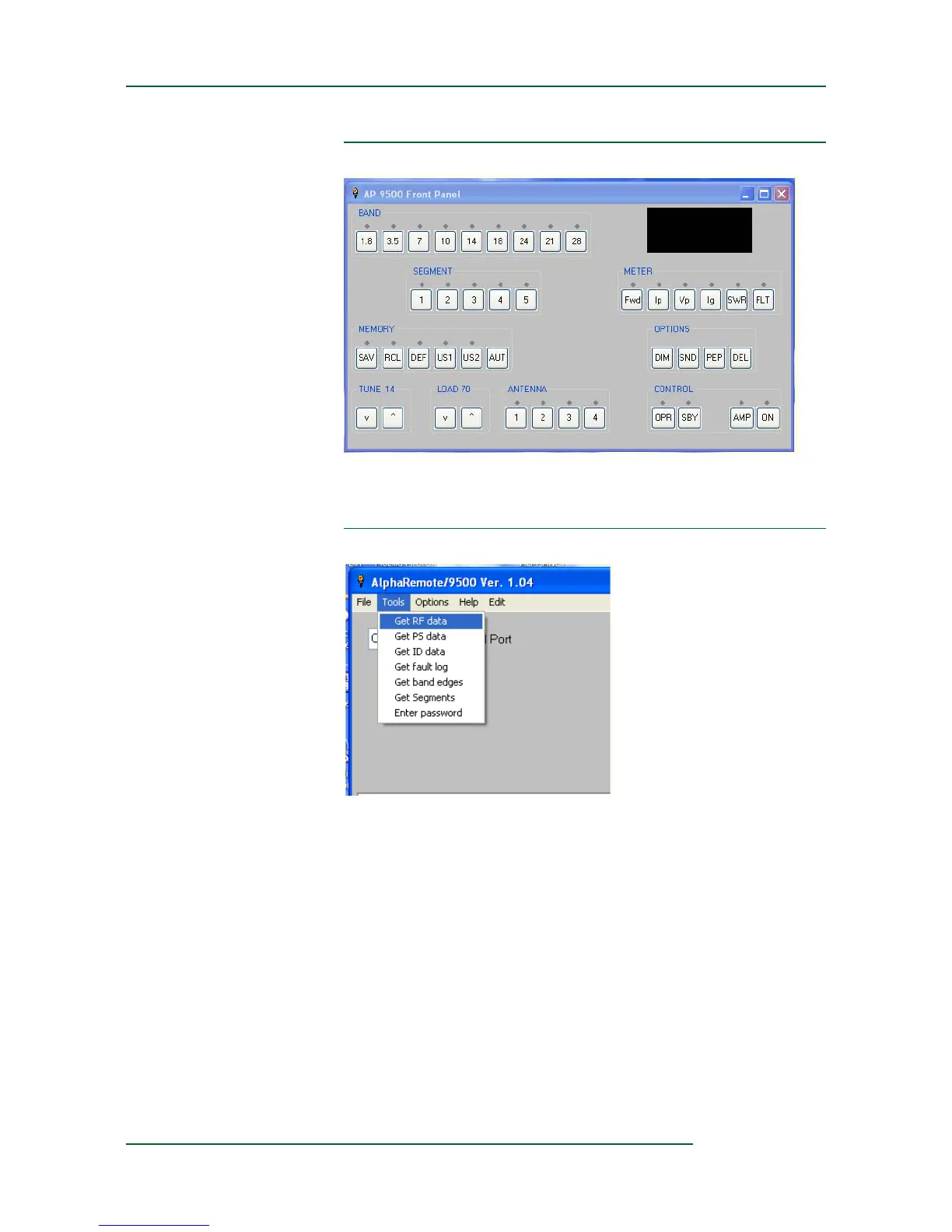 Clicking this selection sends a telemetry request to the amplifier asking