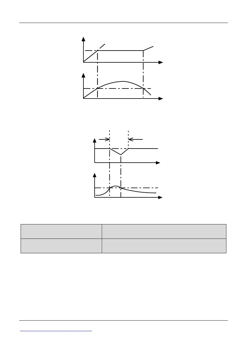 ◆If Pd.06 is set to 1 and enabled, during the deceleration, the ac drive detects the middle