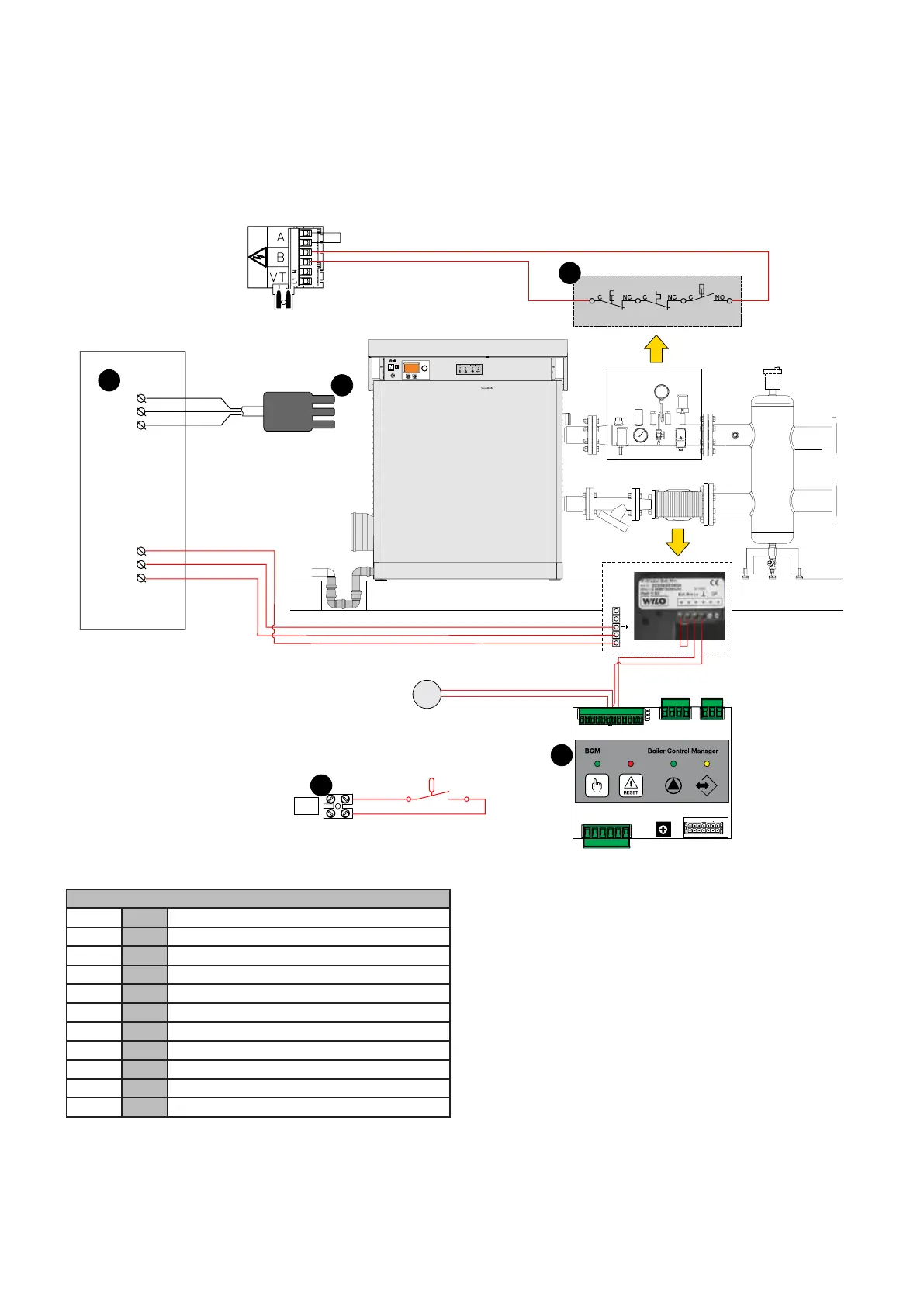 Power supply, INAIL, Modulation pump, external probe, Flow switch.