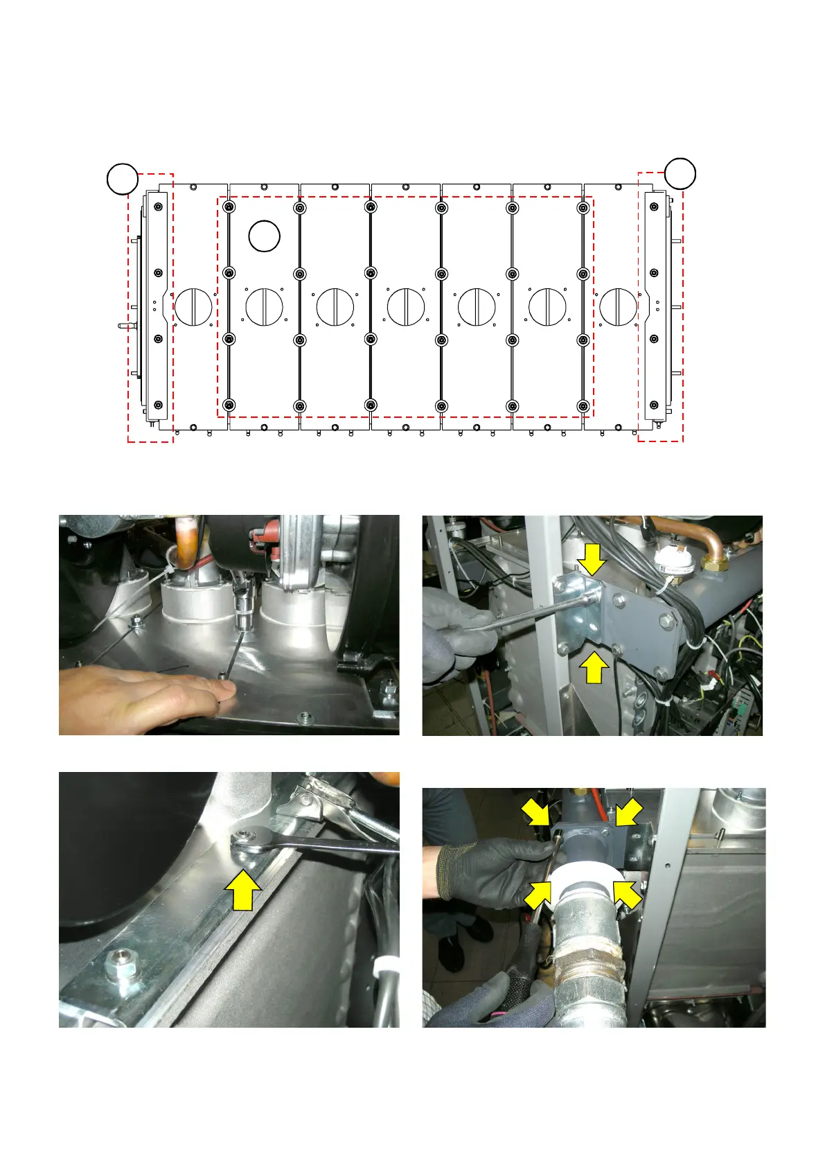 - Take out the four screws, followed by the gas ๎ange, using a 10 mm