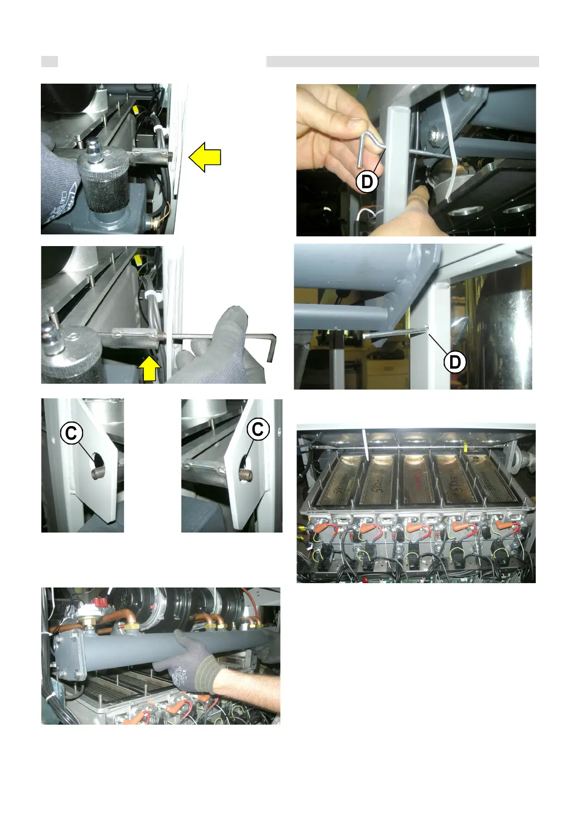 - Li the rear burner block slightly and take out 2 pins with a 4 mm