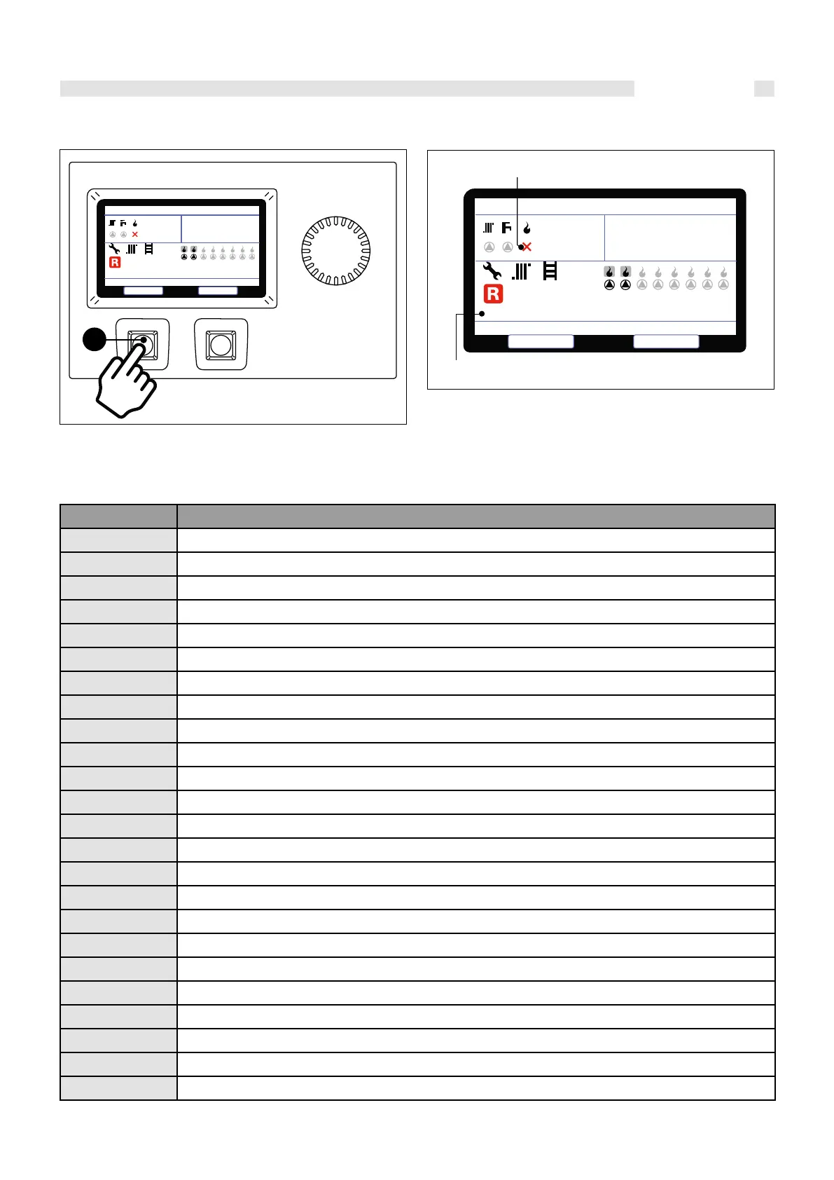 When the boiler detects a fault, the alarm symbol is displayed on the screen together with the relative error code and description.