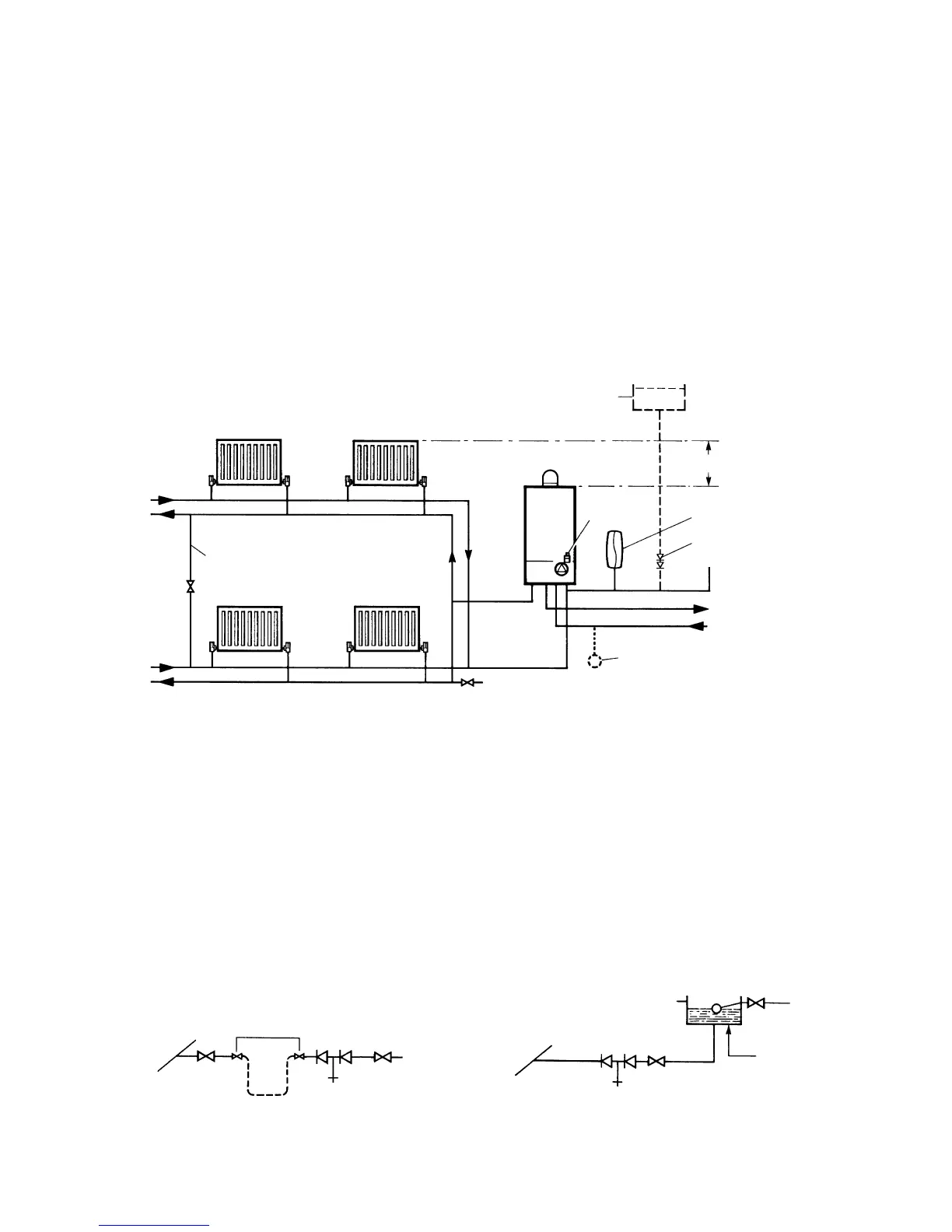 Above 80 litres, consideration should be given to fitting an additional expansion vessel fitted in the position shown in Fig. 5. To