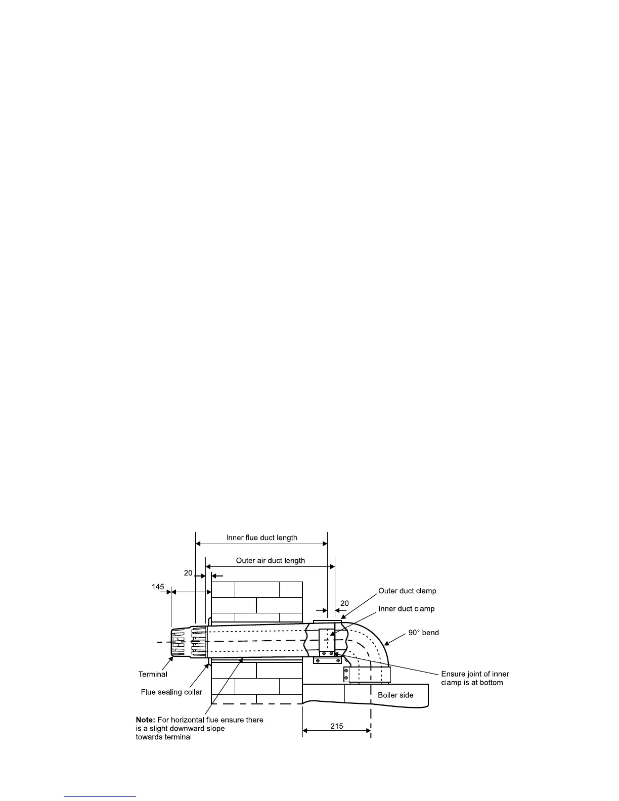 10. It may be necessary to support the flue with suitable brackets (every metre) when flue lengths approaching the maximum