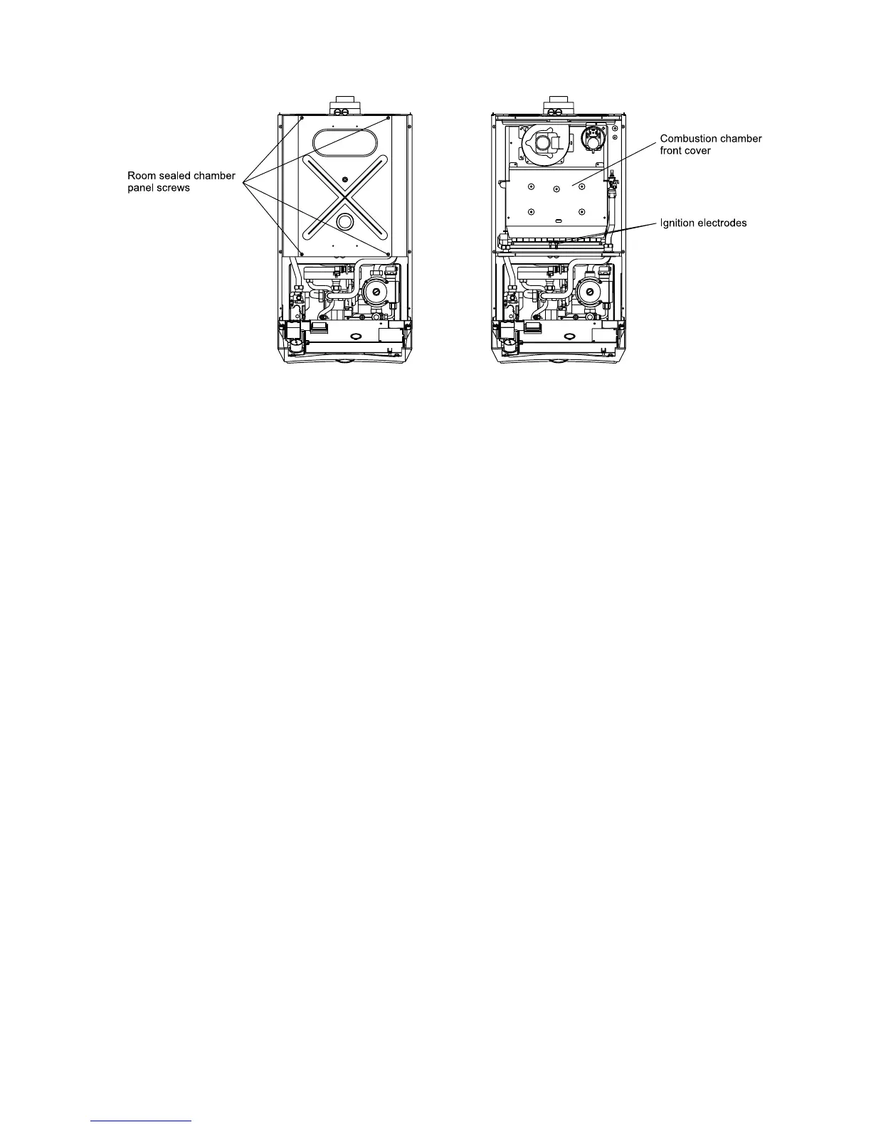 4. Remove the four screws securing the room sealed chamber panel and remove the panel, taking care not to damage the seal.