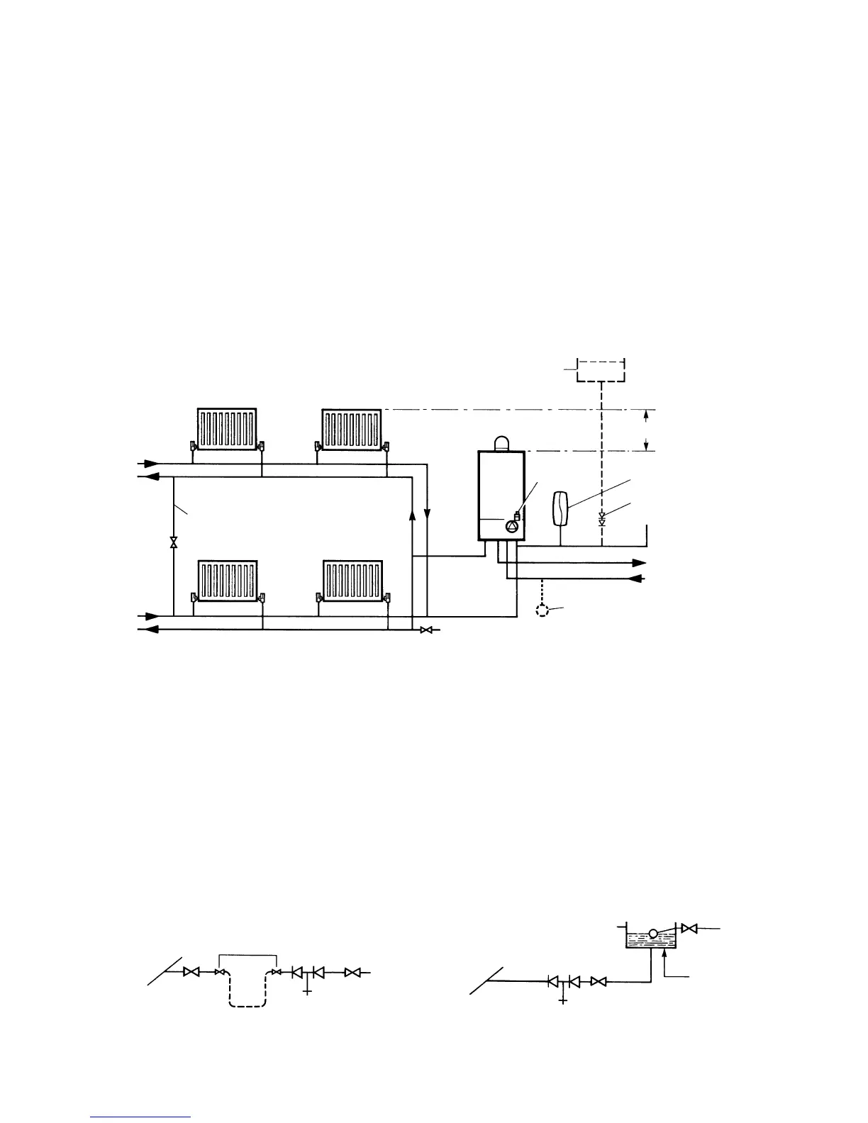 Above 80 litres, consideration should be given to fitting an additional expansion vessel fitted in the position shown in Fig. 5. To