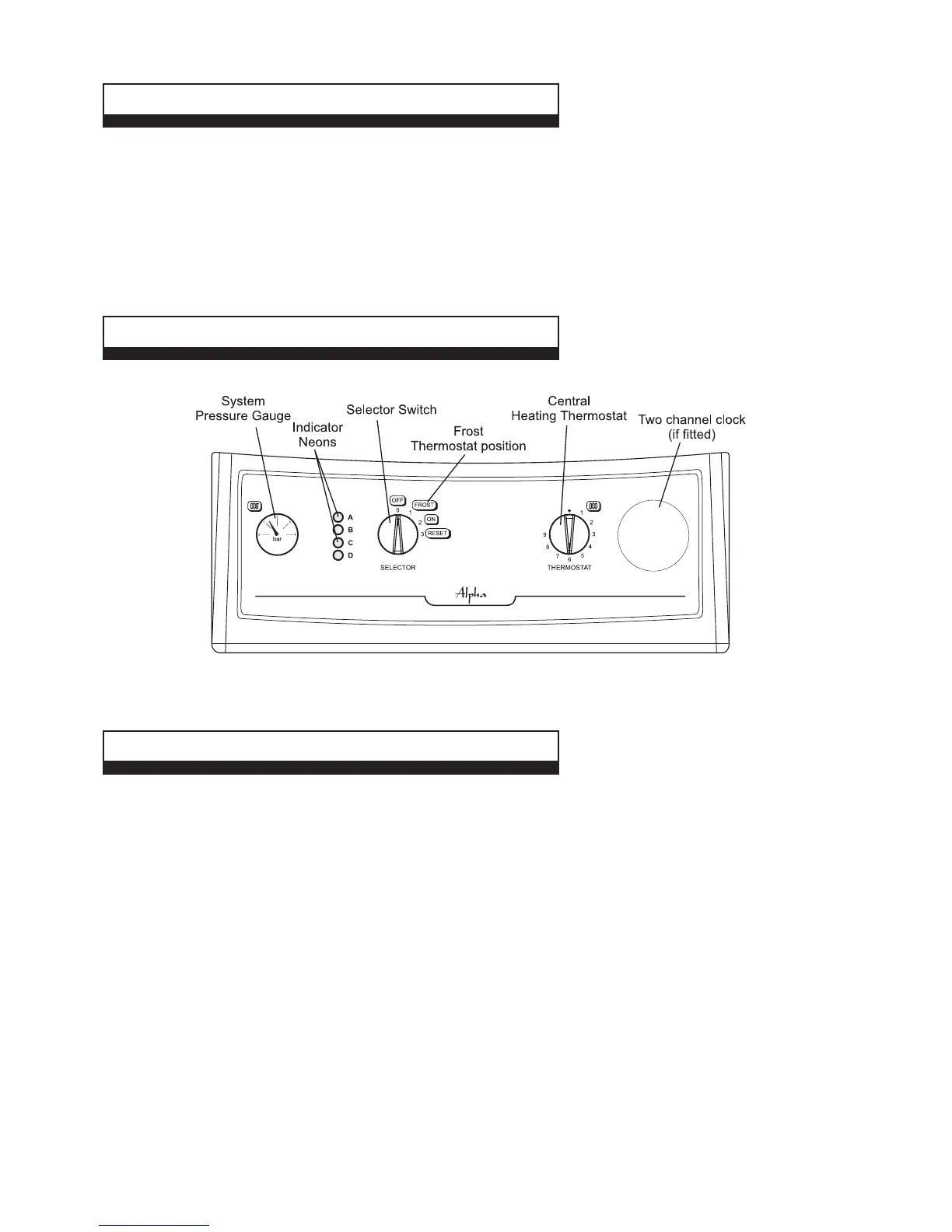 clock (if fitted) and frost thermostat will not operate when the switch is in the vertical position, i.e. 'Off' position (0).