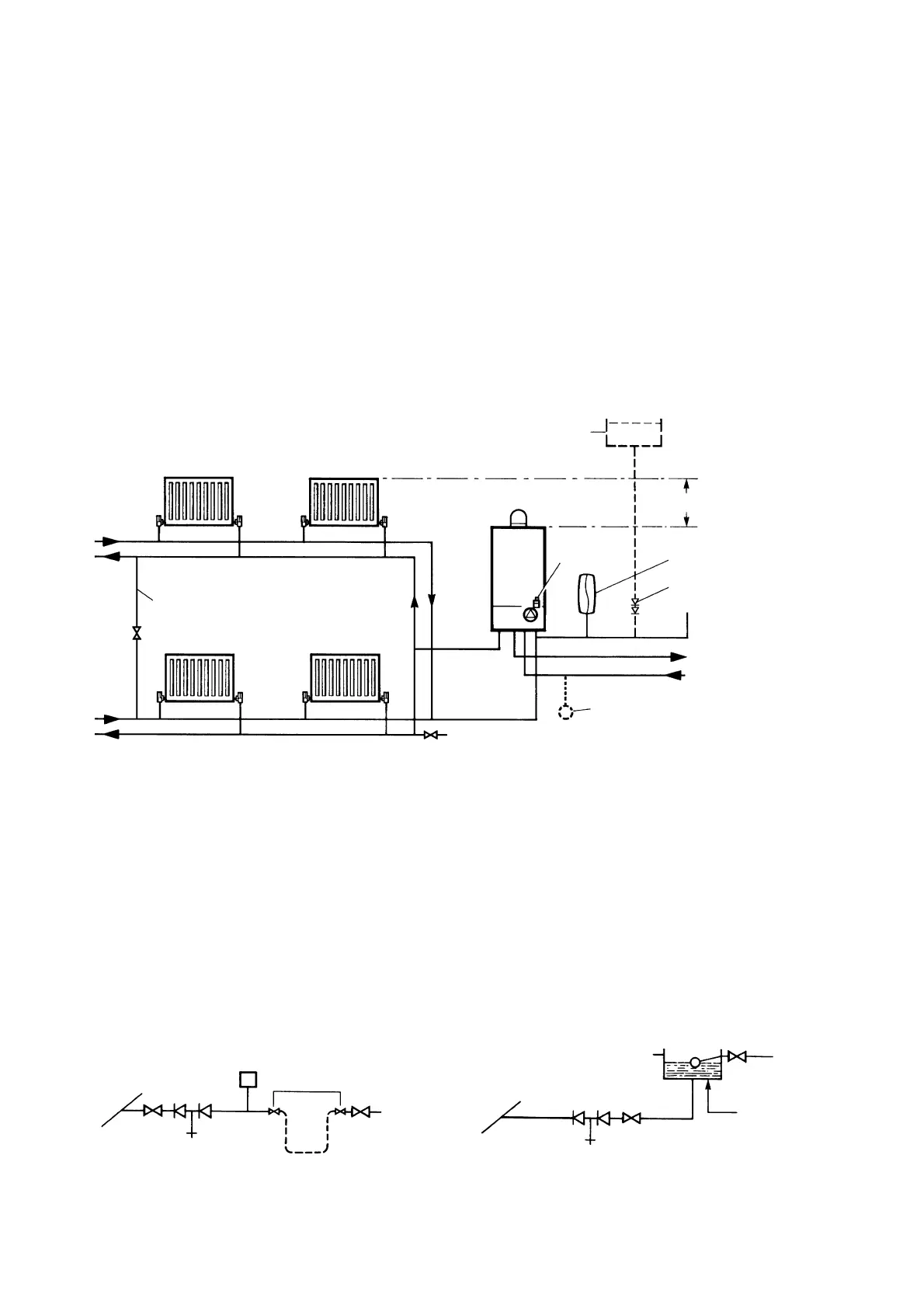 Above 80 litres, consideration should be given to fitting an additional expansion vessel fitted in the position shown in Fig. 5. To