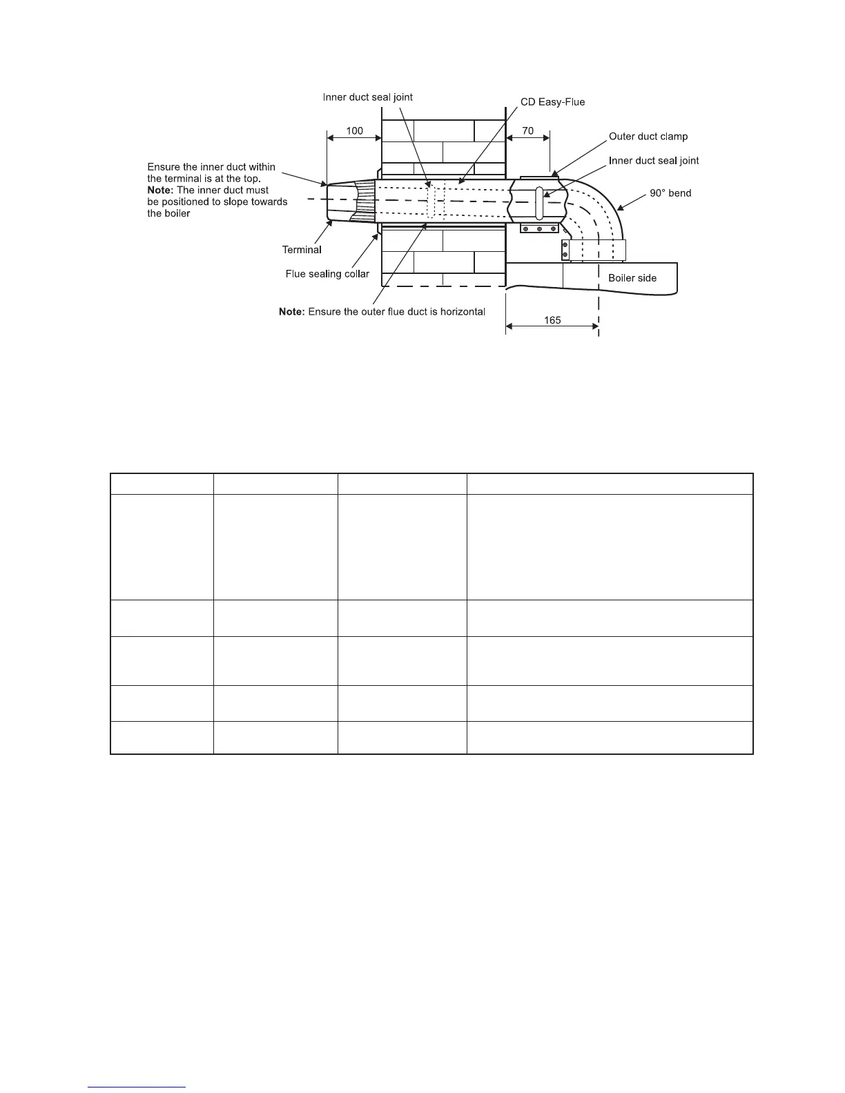 supplied. Fit the Easy-Flue to the extensions by locating the inner duct into the seal joint and secure with the clamp (three