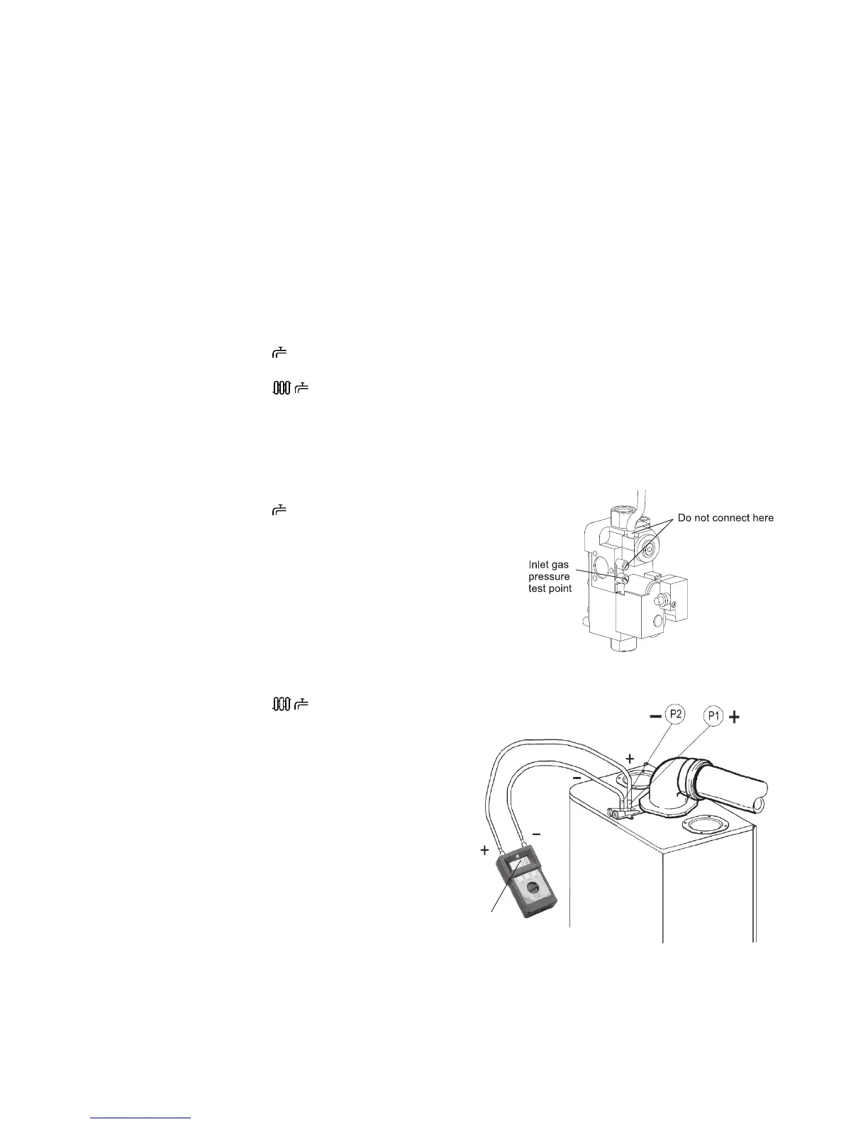 to P1 and P2 as shown in Fig 24. Allow the boiler to run for 10 minutes and check the differential burner pressures.