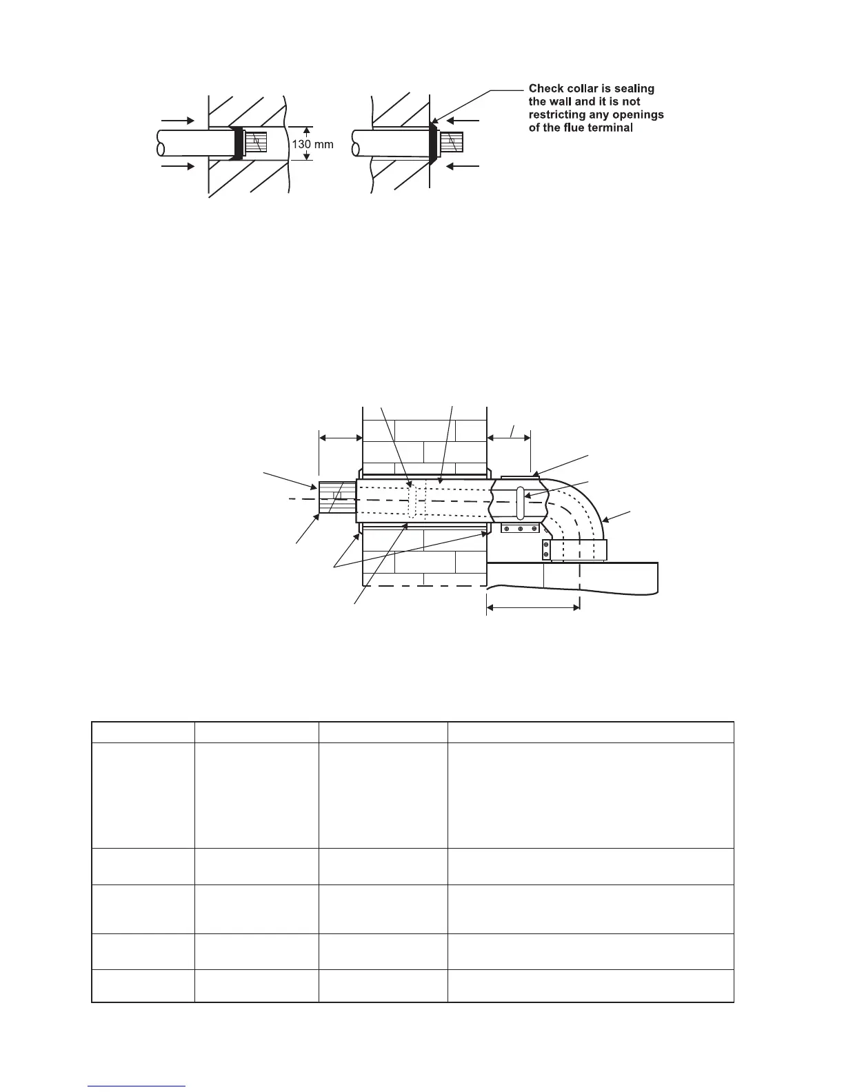 Note: A 130 mm flue hole (127 mm core drill) is