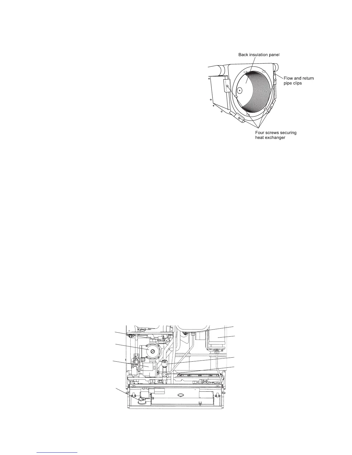 6. Remove the two clips from the heat exchanger flow and return