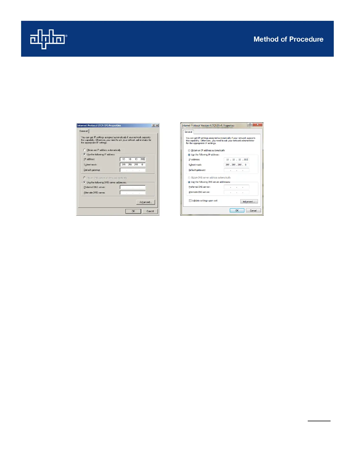 value to be 10.10.10.202 and Subnet Mask to be 255.255.255.0.