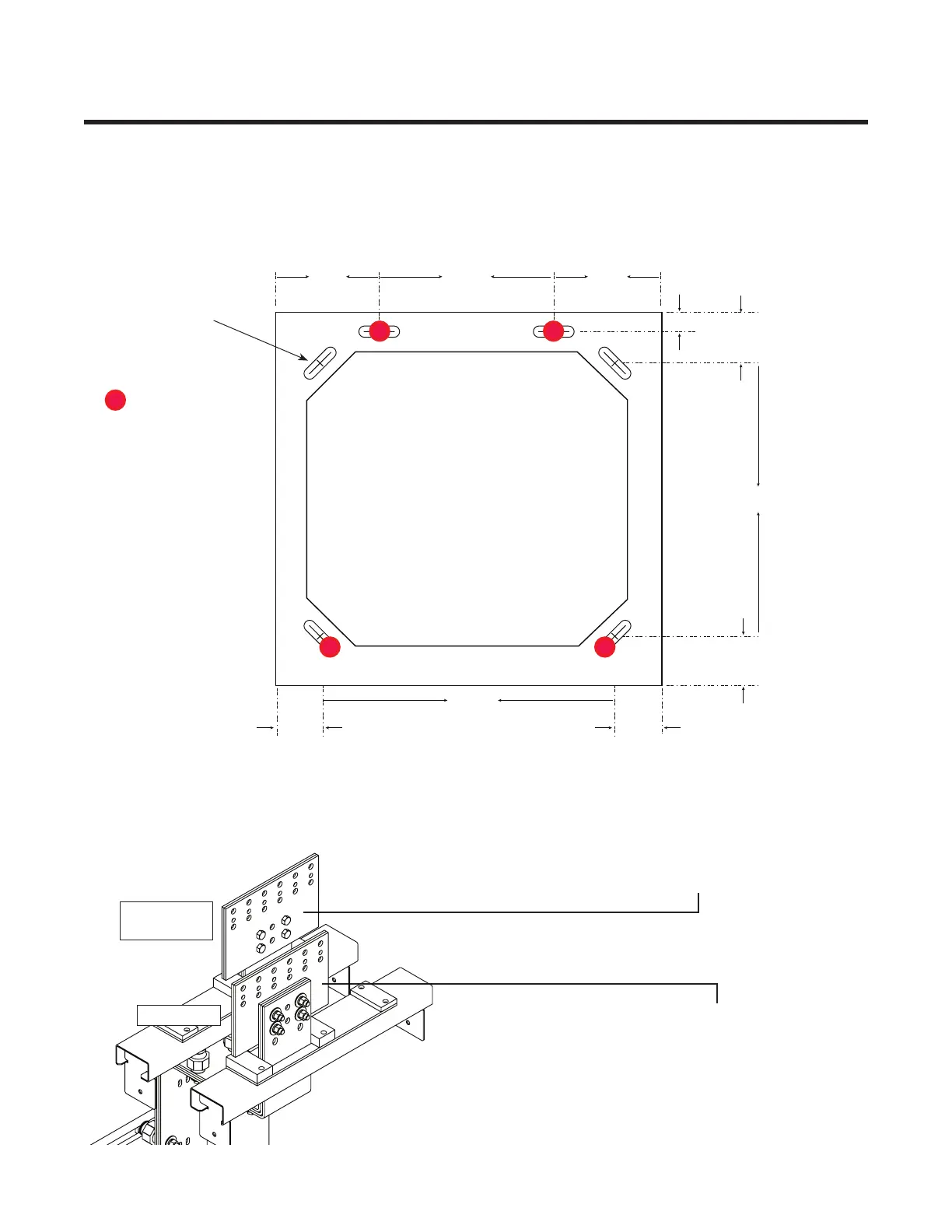 1. Secure the bay to the floor. Locate bolts in slots as shown for greatest stability.