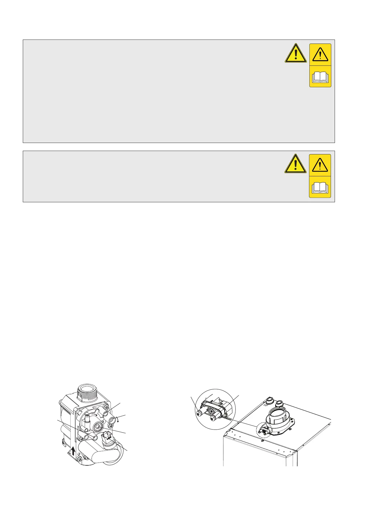2 checks must be carried out with the case fitted, while the gas valve adjustments must be carried out with